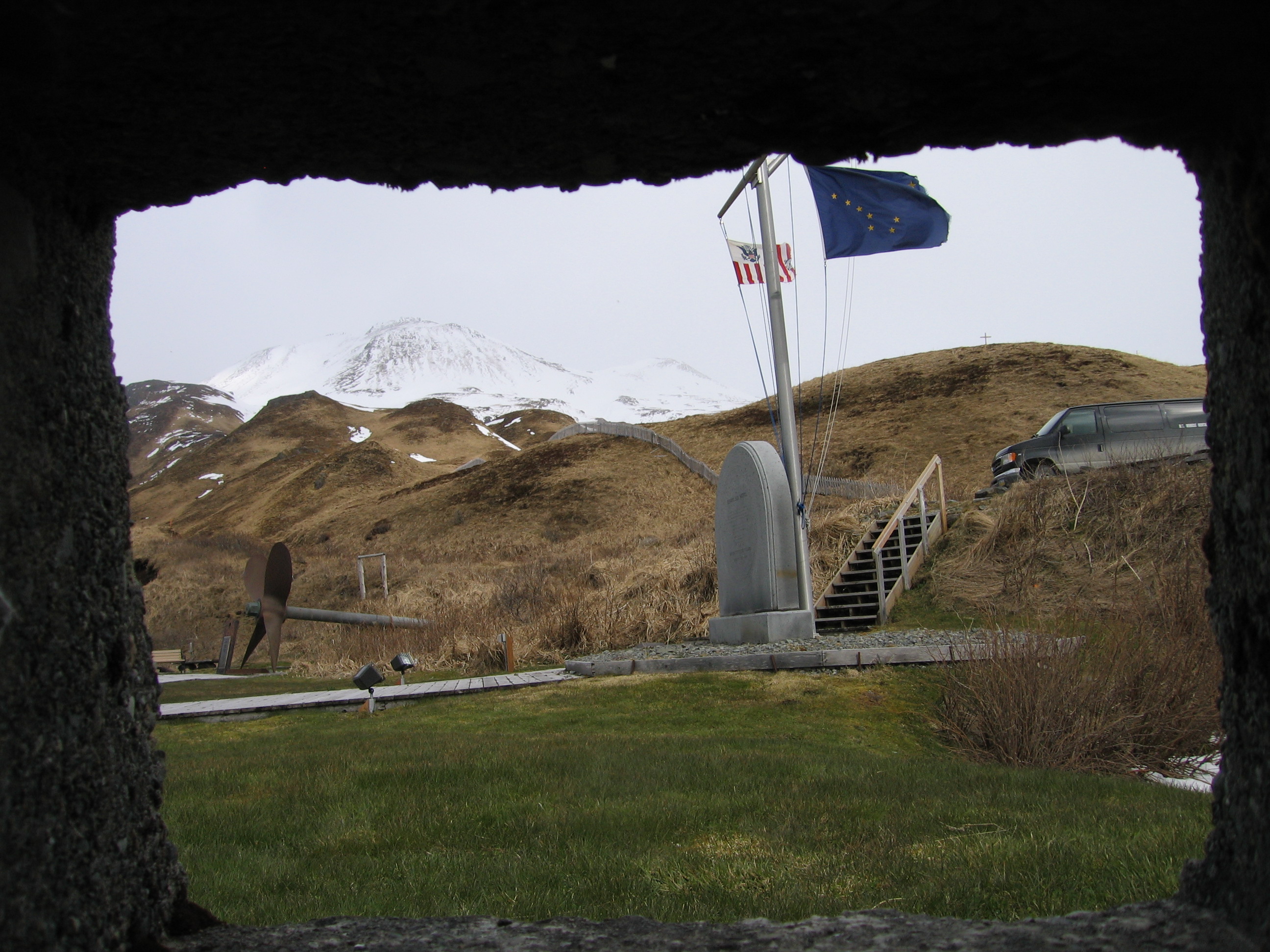 View looking out from inside WWII concrete bunker near Dutch Harbor, AK.