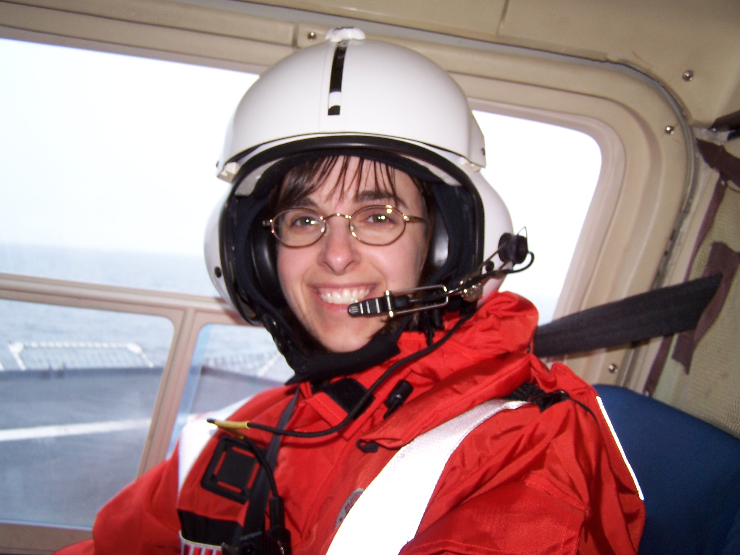 Patty Janes in helicopter on way to St. Lawrence Island, AK
