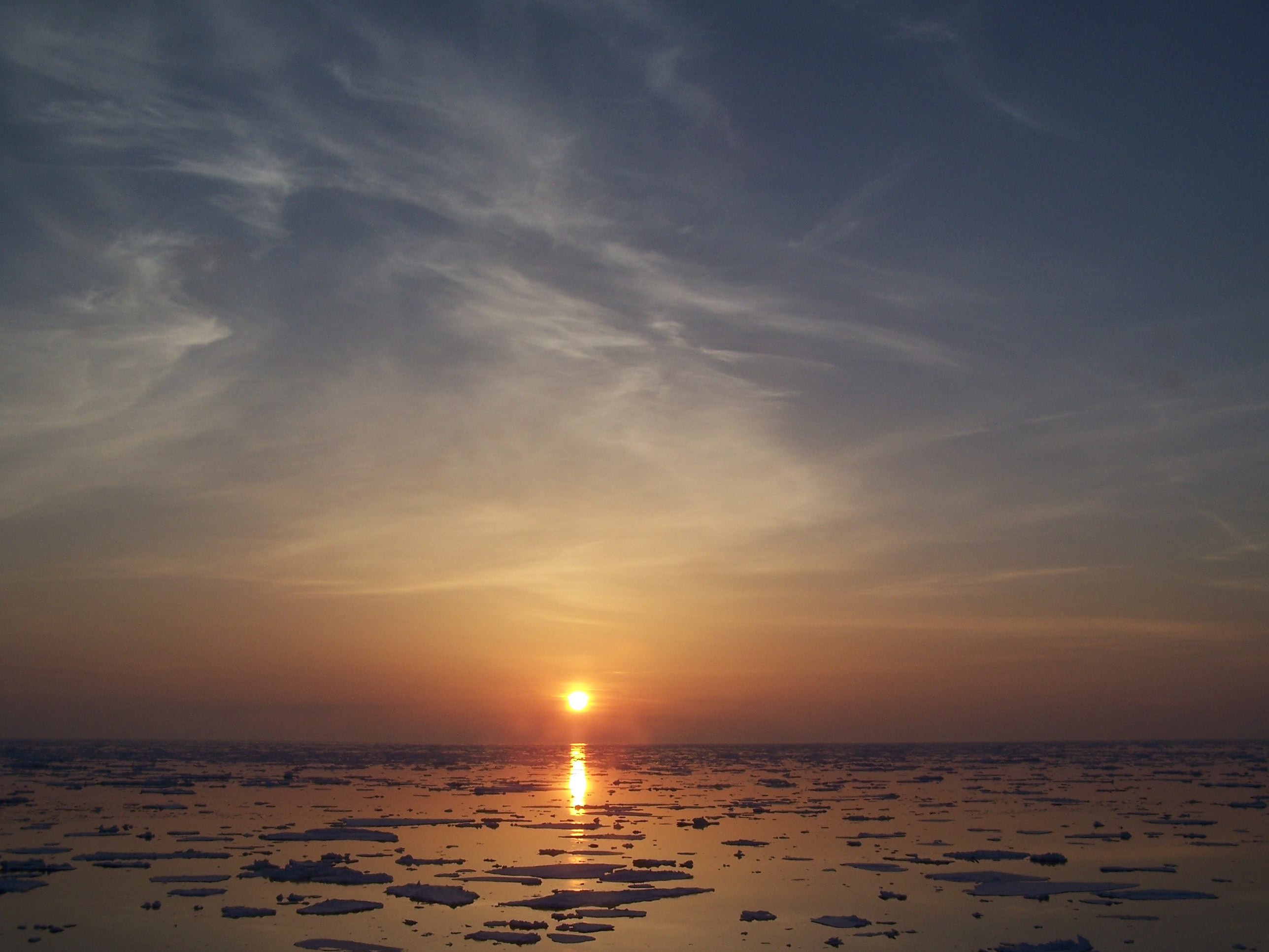 Sunset on the USCG Healy icebreaker on the Bering Sea.