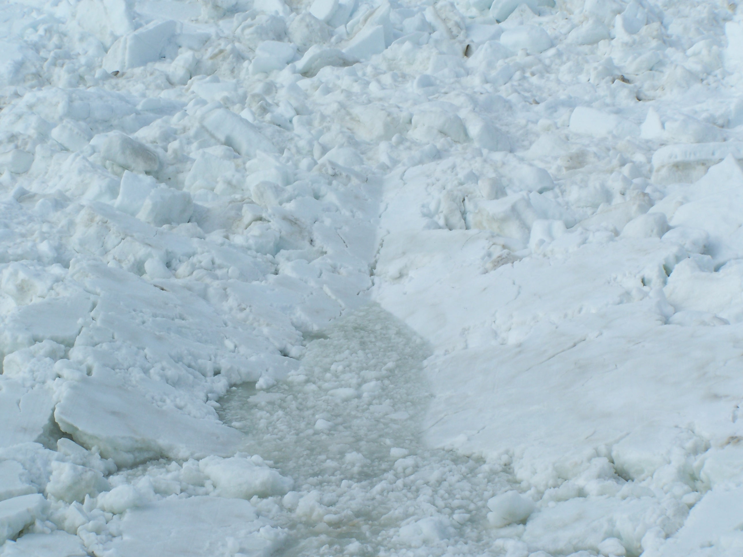 Hull mark of the USCG Healy icebreaker after performing back and ram maneuver.
