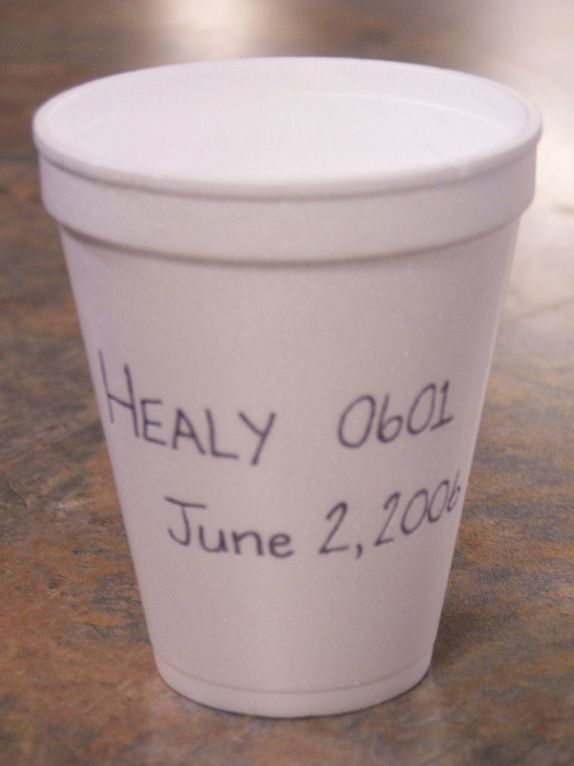 Writing on a Styrofoam cup to be lowered into the ocean to be shrunk from water pressure.