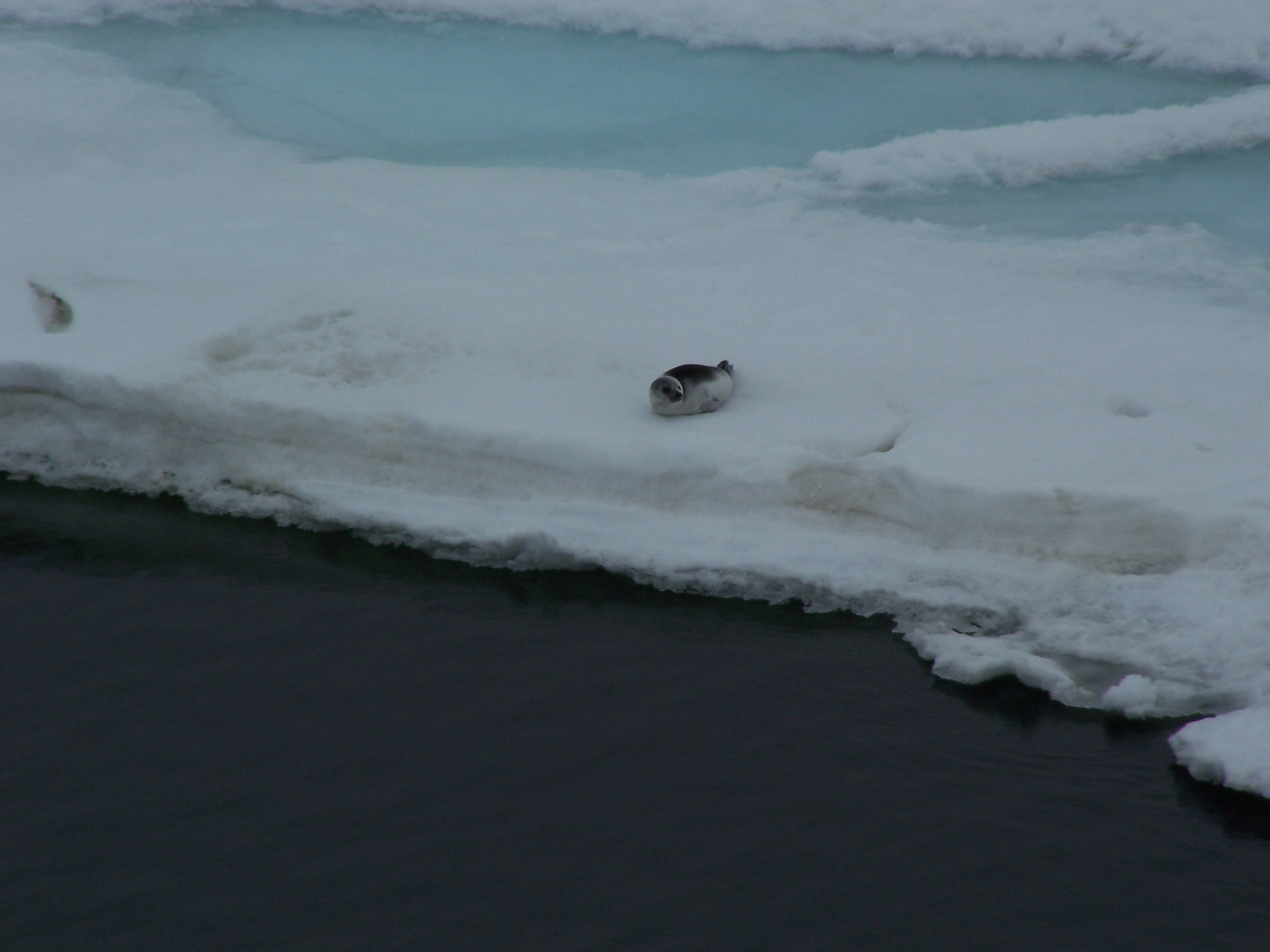 Bearded seal on ice in the Bering Sea as seen from USCG Healy icebreaker.