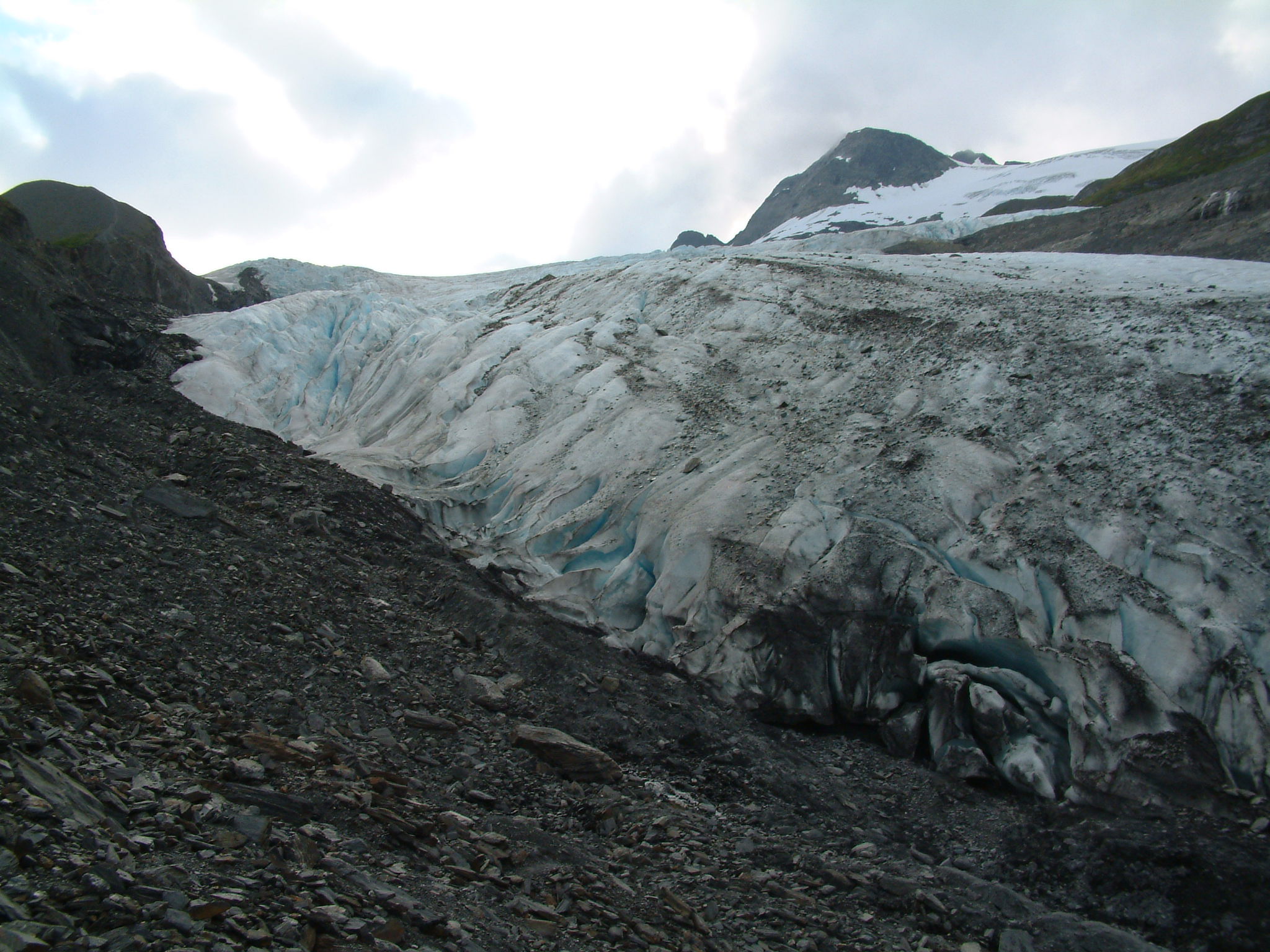 A photo of a foggy Worthington Glacier located outside of Valdez, Alaska.