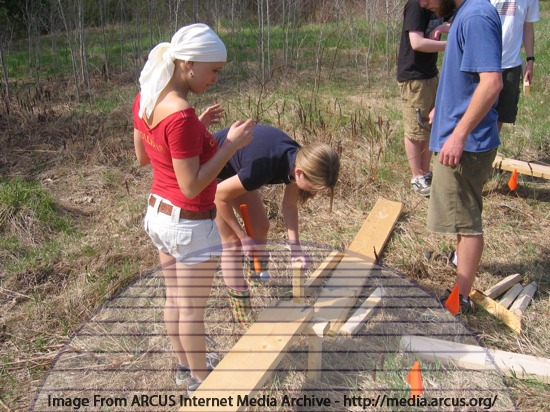 Teacher Tom Crumrines students and their research plots as seen by Arctic Visiting Speaker Syndonia Bret-Harte during her May 2006 visit to Concord High School in New Hampshire.