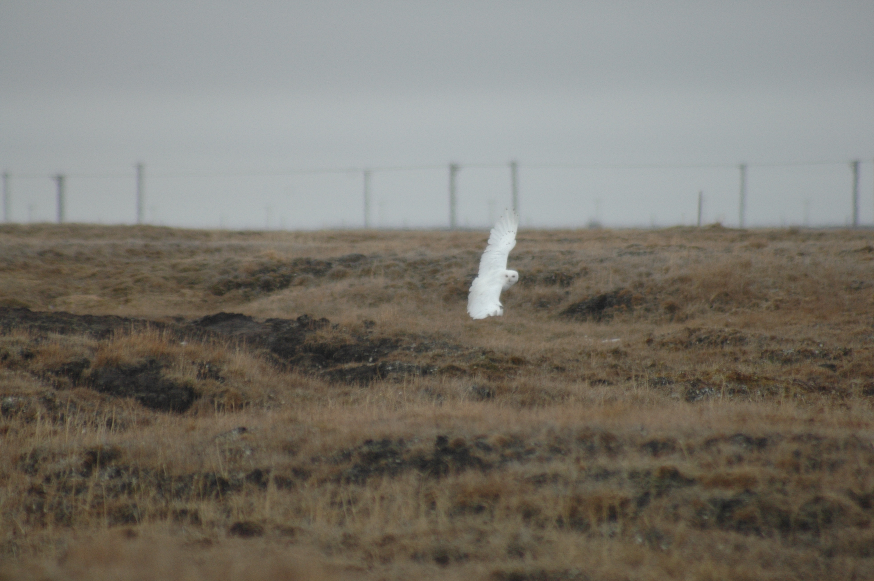 A Snowy Owl in flight. Barrow, Alaska.