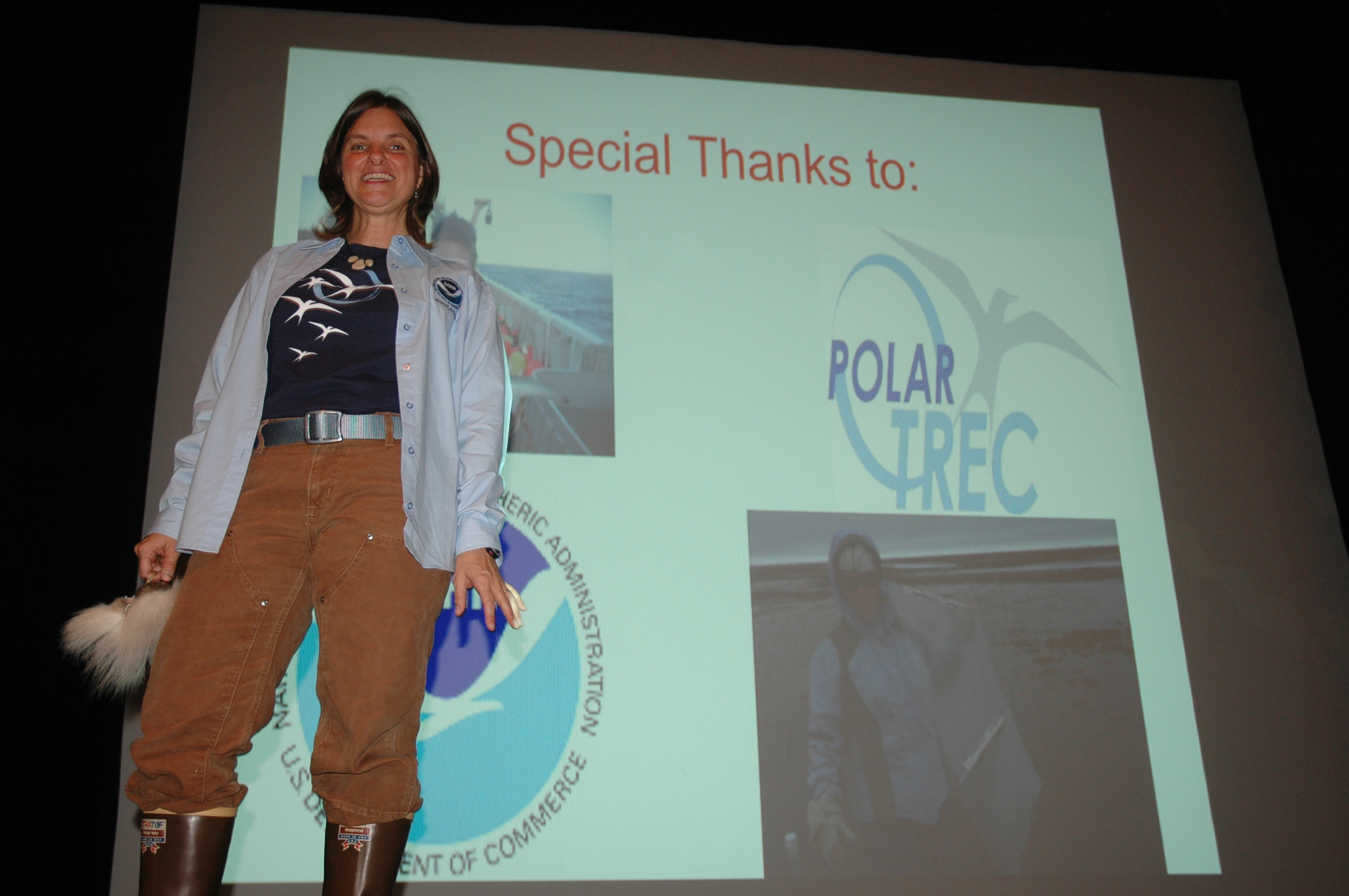 Elizabeth Eubanks says, "finishing my speech to Palm Beach County Public School teachers, I must say a big thanks to PolarTREC for changing my life." At the Boynton Beach Community High School Science Symposium in Boynton Beach, Florida.