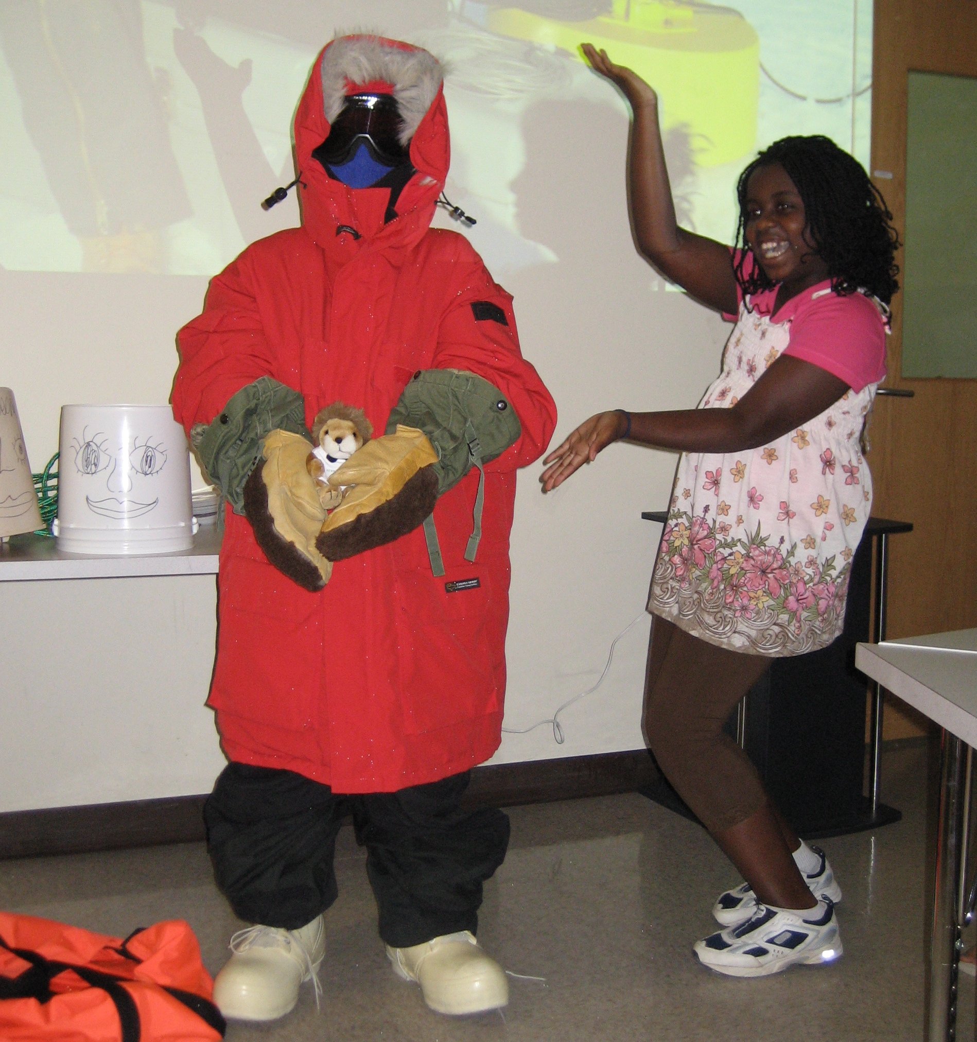 Gerty Ward says, "here in North Carolina, we are not accustomed to wearing so many clothes." Mrs. Ward's classroom, Durham Academy Middle School, Durham, North Carolina.