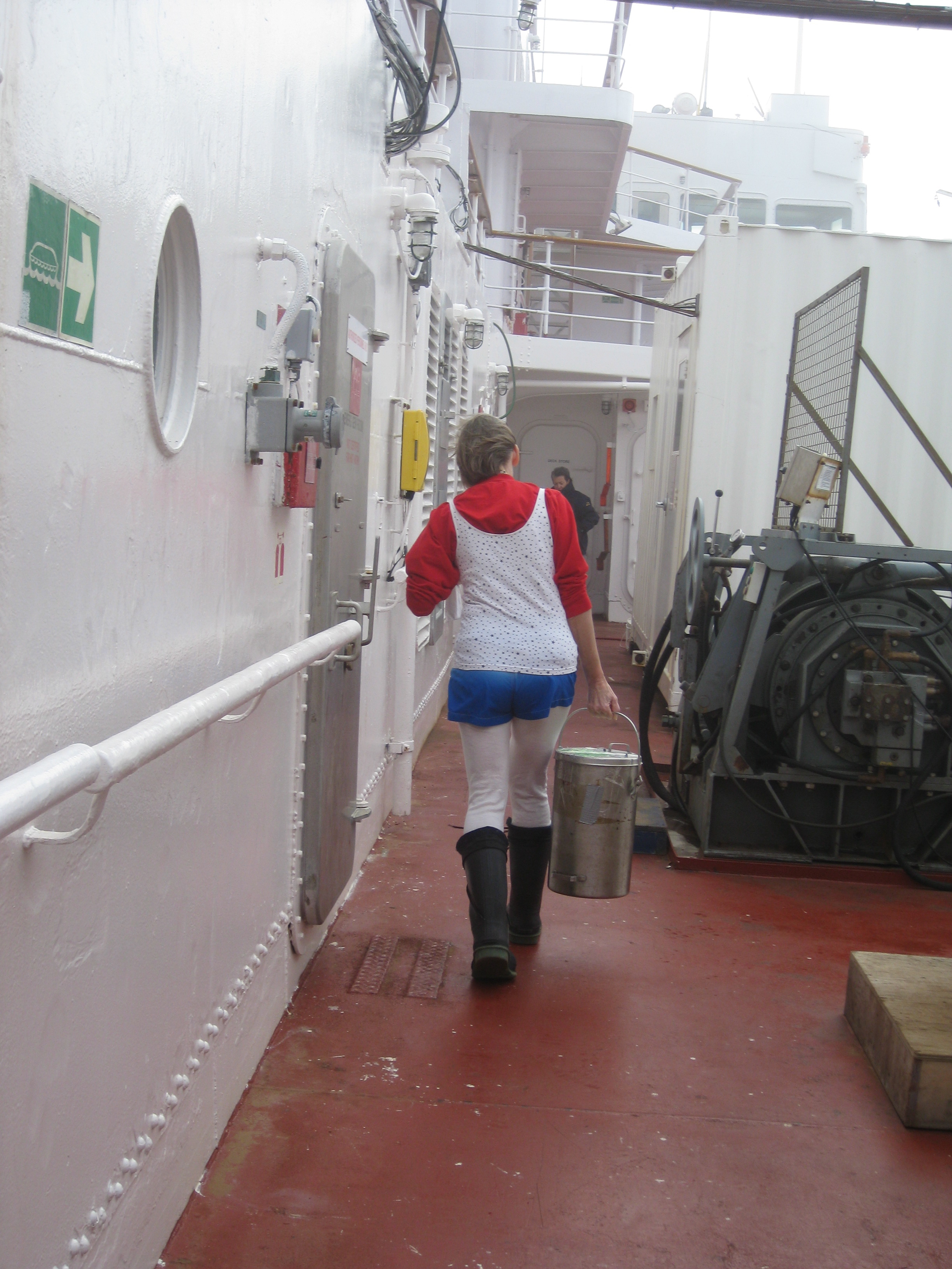 Work goes on. Nes Sutherland tends samples during the Heli Deck High Dive competition. Aboard the Canadian Coast Guard icebreaker Louis S. St-Laurent, on the Beaufort Sea.