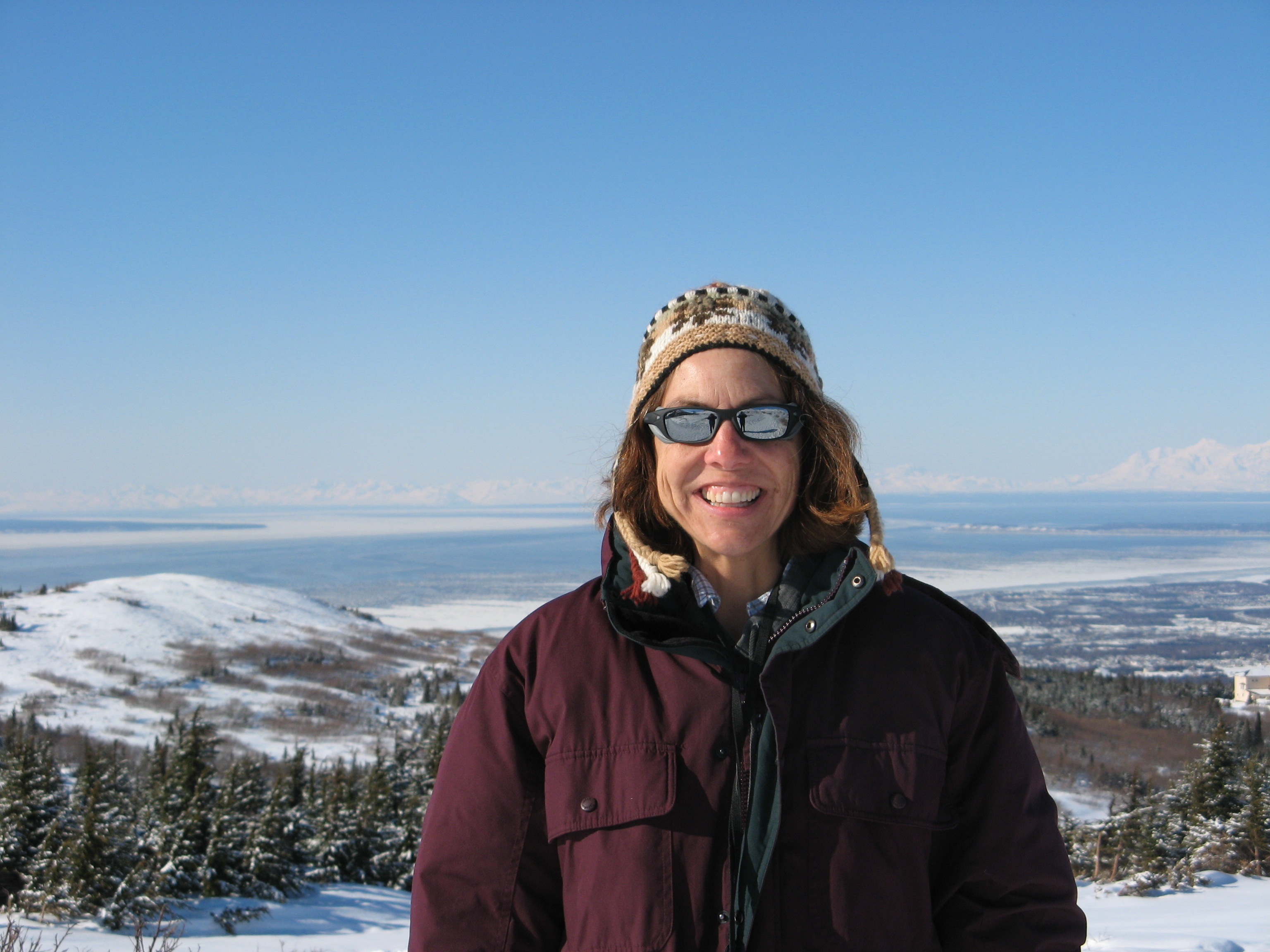 Betsy Wilkening stands at the lookout point in Chugach State Park in Anchorage, Alaska.