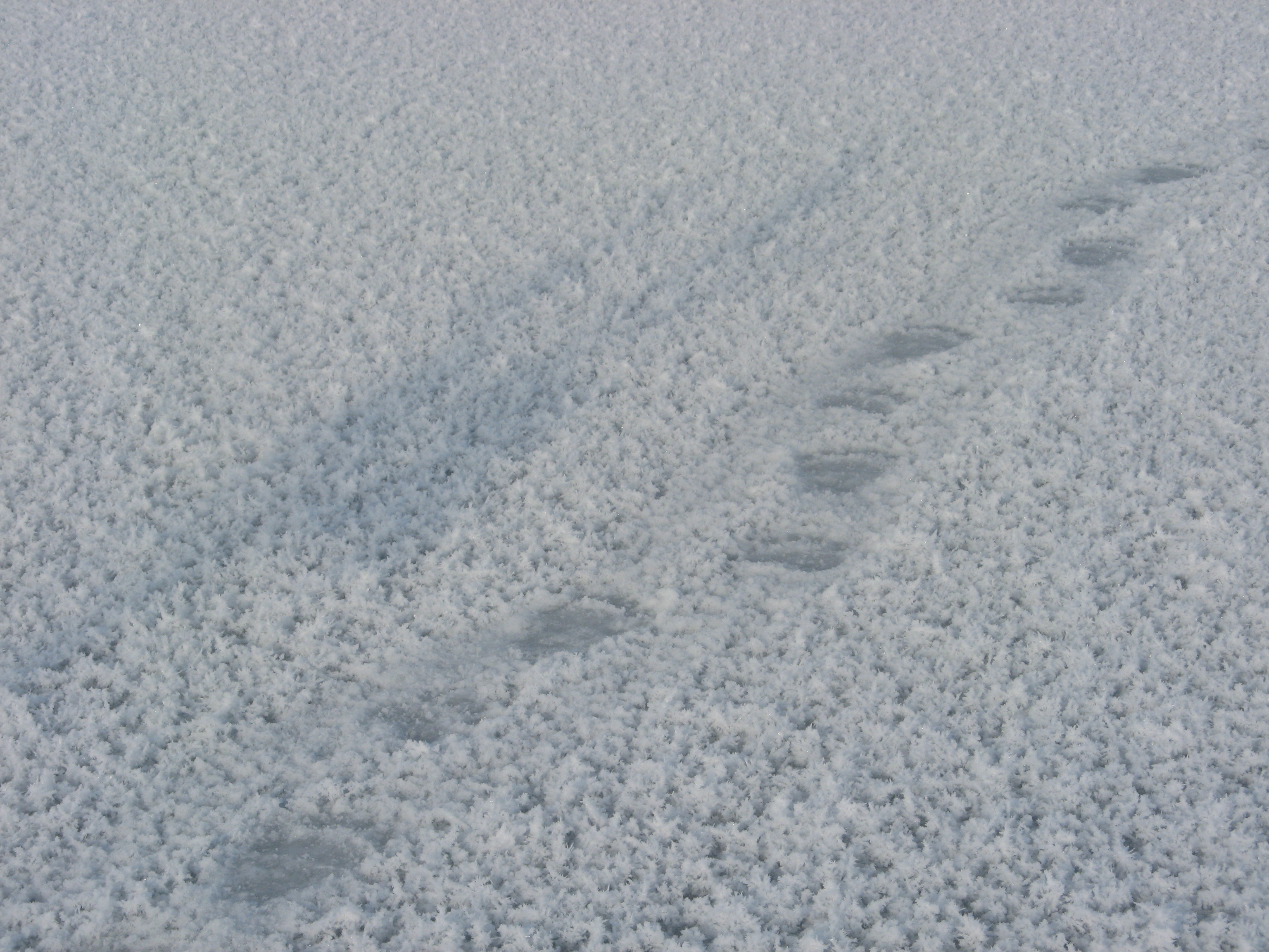 Polar bear paw prints on the sea ice near Barrow, Alaska.