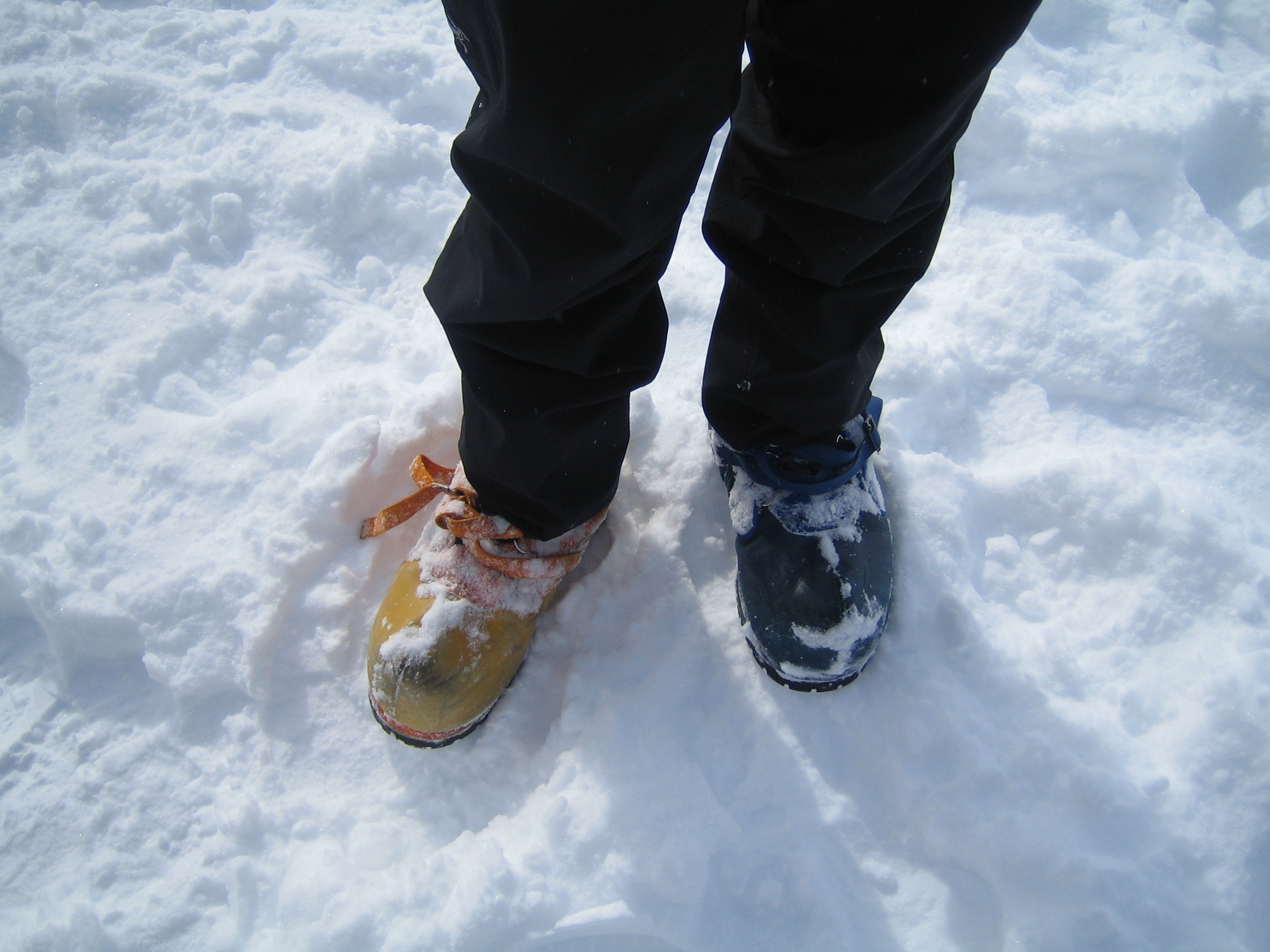 Scientists don't mind if their bunny boots match. They just want to stay warm! NEEM Camp, Greenland.
