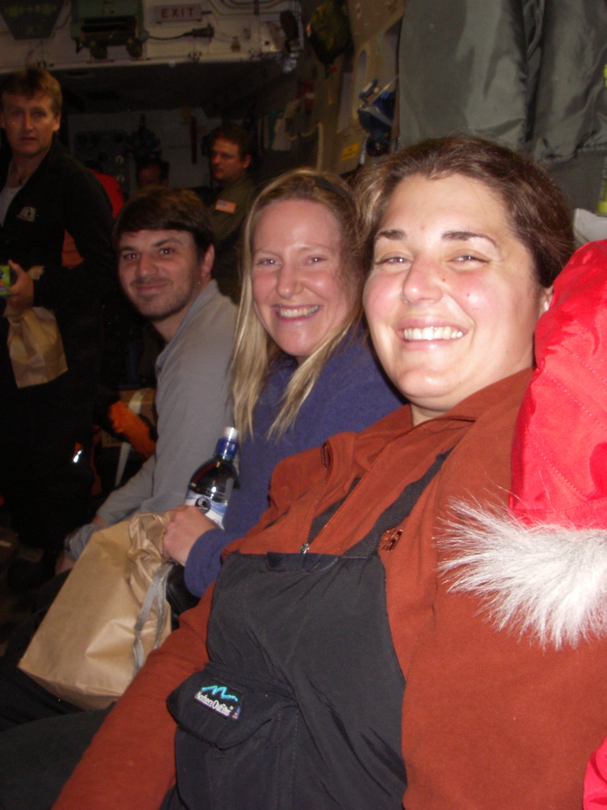 Mike San Clements, Christine Foreman, and Sarah Diers aboard the C-17 in Christchurch, New Zealand.