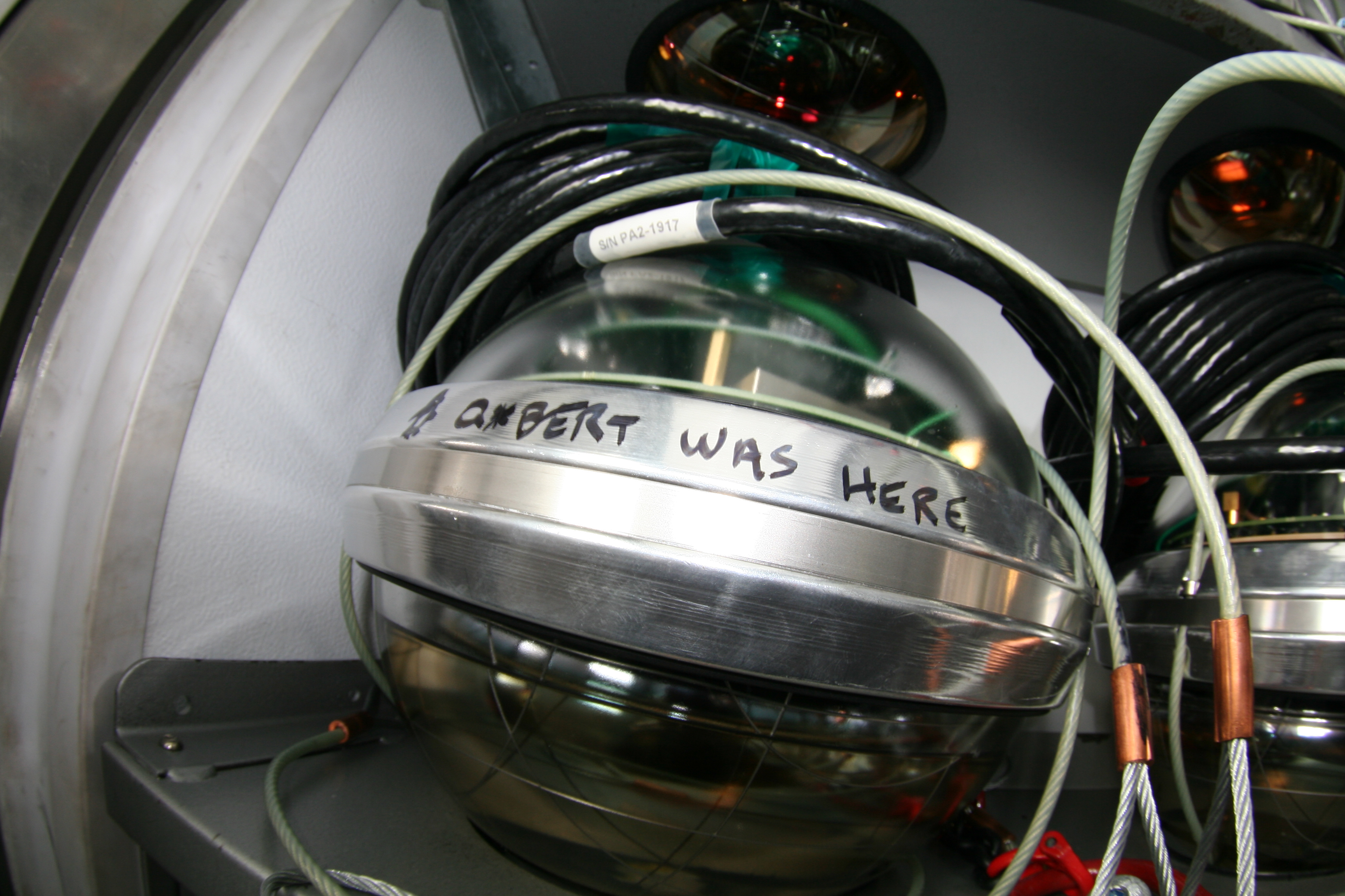 Casey O'Hara: "As I watched and documented the work of the deployment team, they said I should sign a DOM (digital optical module). So I picked this one and vandalized it a little. This side of the DOM is for my classes. This DOM was named 'Minas Ithil' -- bonus nerd cred for anyone who knows the significance of that one." Near the Amundsen-Scott South Pole Station, Antarctica.