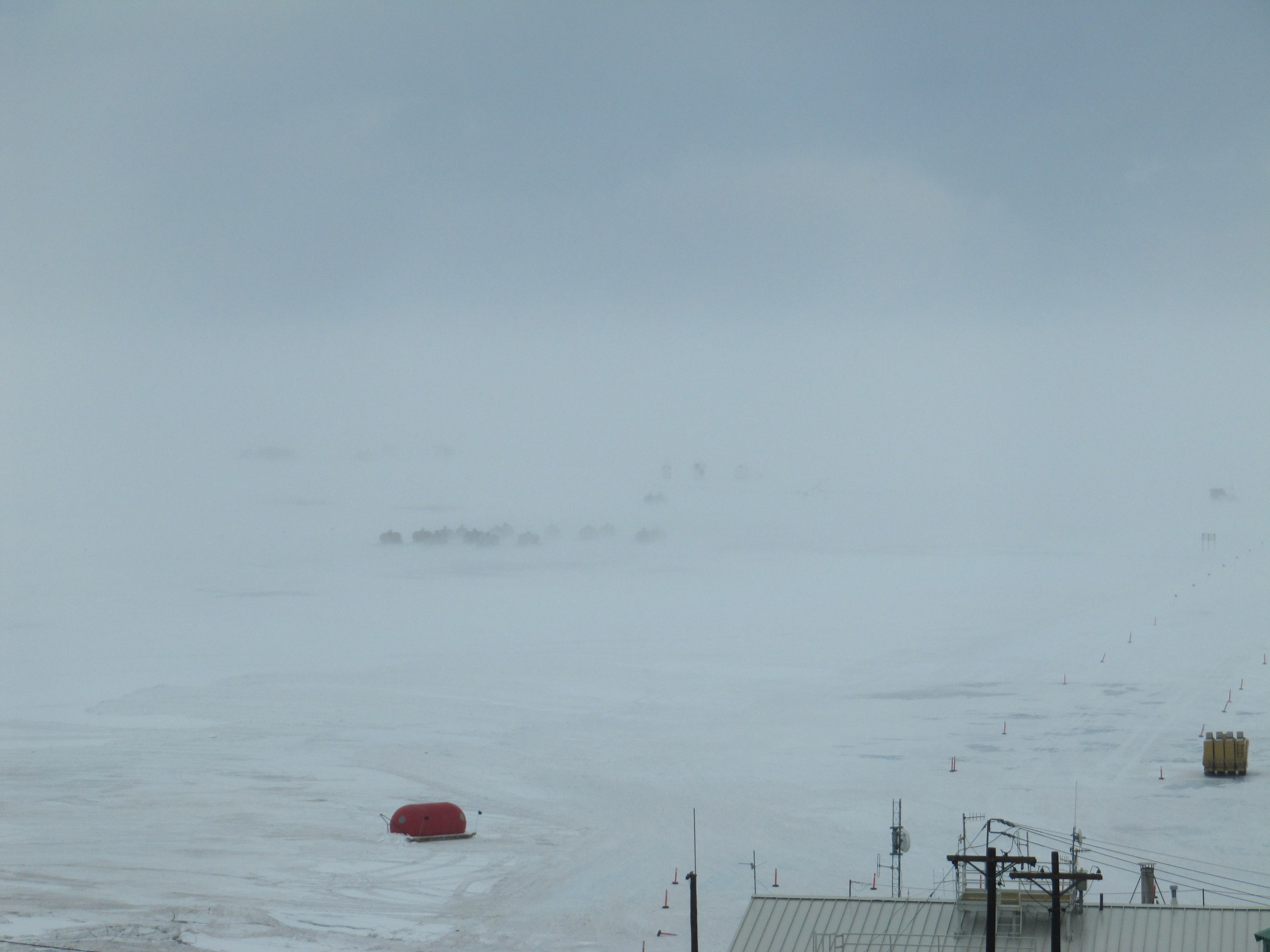 Lindsay Knippenberg: "I took this shot of the sound during the storm. Out on the sea ice the wind was blowing over 75 mph and blowing the fine snow everywhere so that you could no longer see the mountain range." McMurdo Station, Antarctica.
