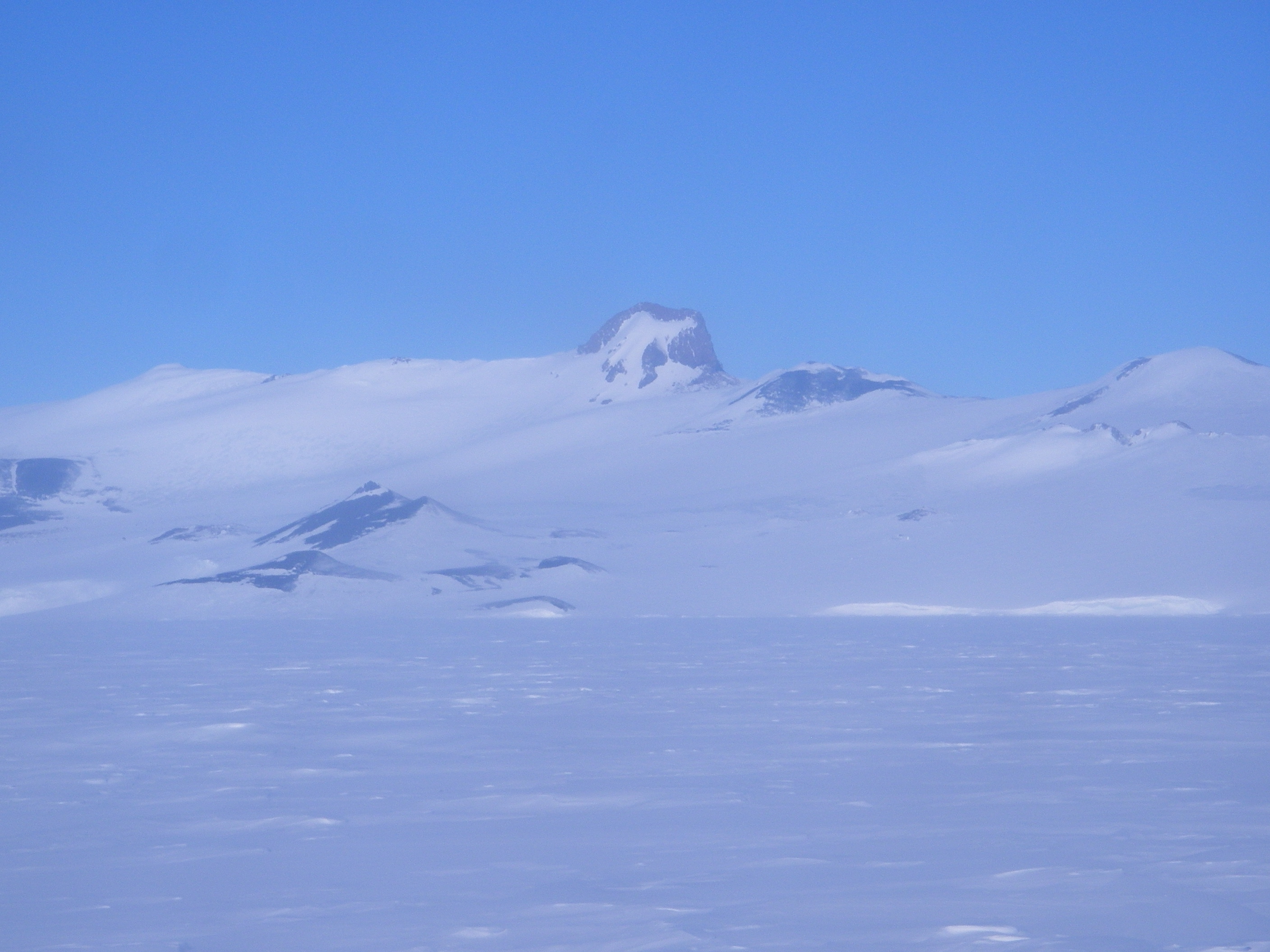 One of the more prominent features on the coastline of Ross Island is Castle Rock. There is a hiking/skiing trail that many people take to Castle Rock from McMurdo Station. Near McMurdo Station, Antarctica.