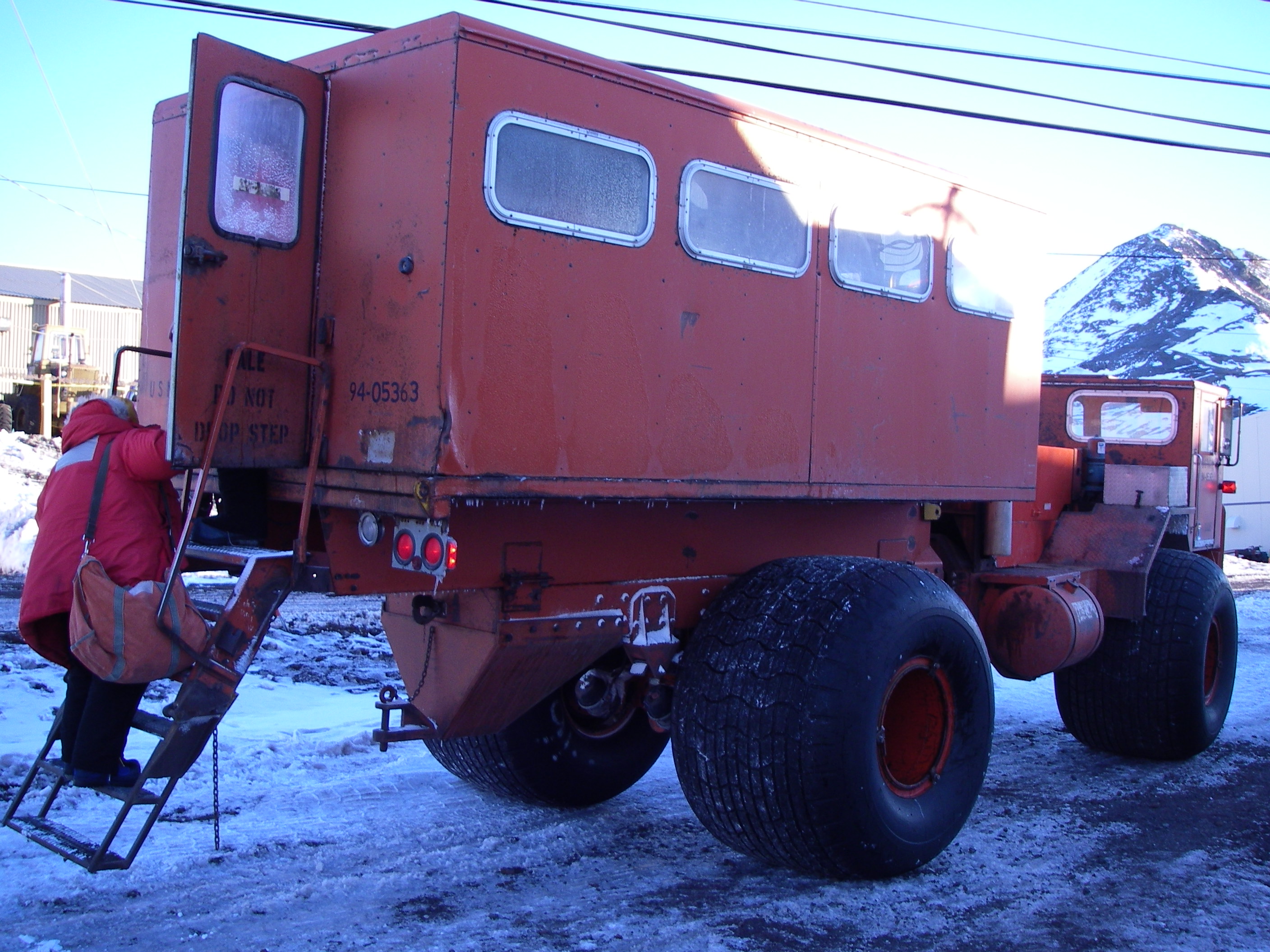 The Delta was the team's transportation to Cape Evans. Even with its large tires, it still got stuck in the snow. McMurdo Station, Antarctica.