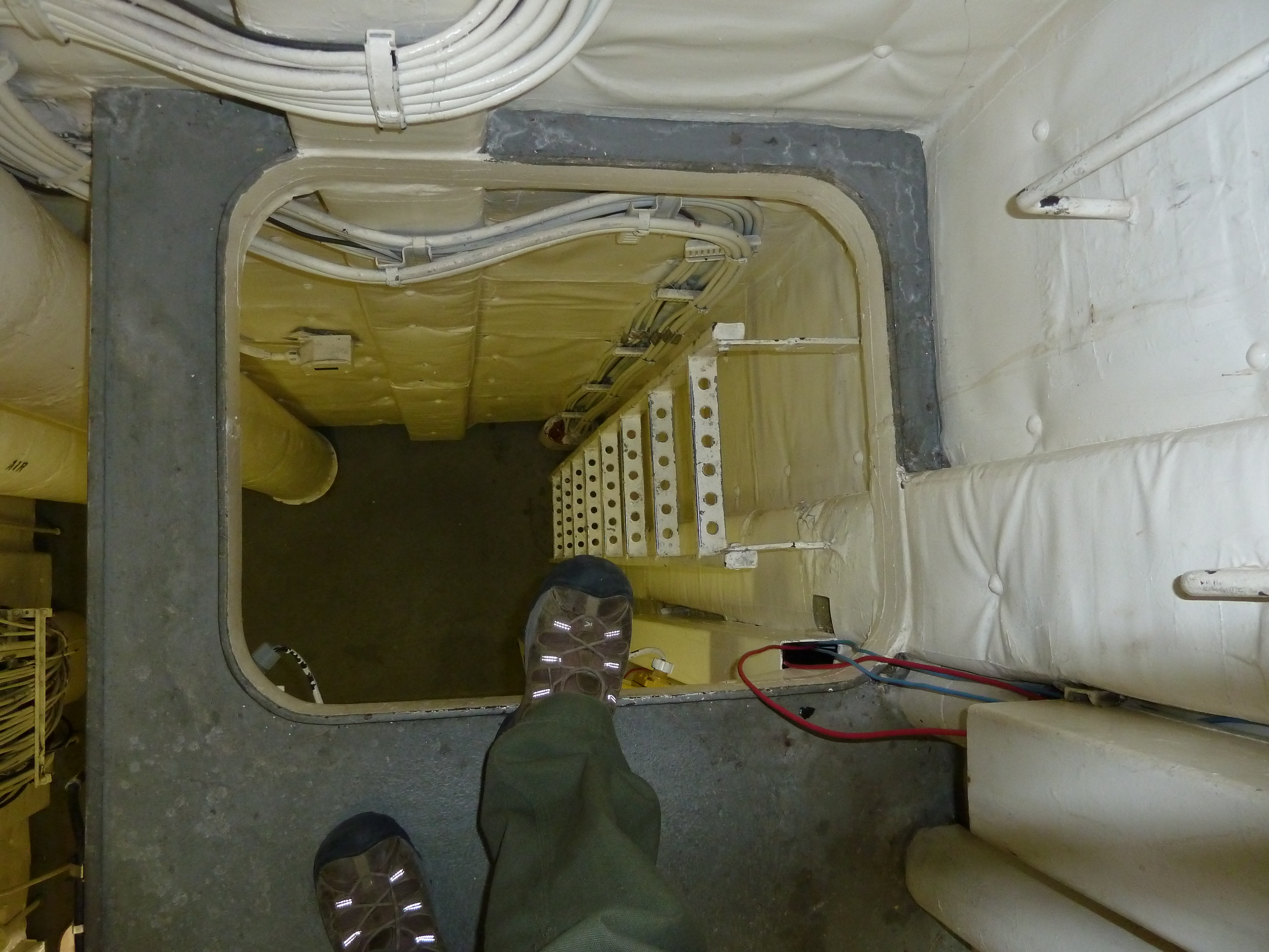 This is one of three ladder sections in the tower ascending to the aloft con. Aboard the USCGC Healy icebreaker in the Arctic Ocean.