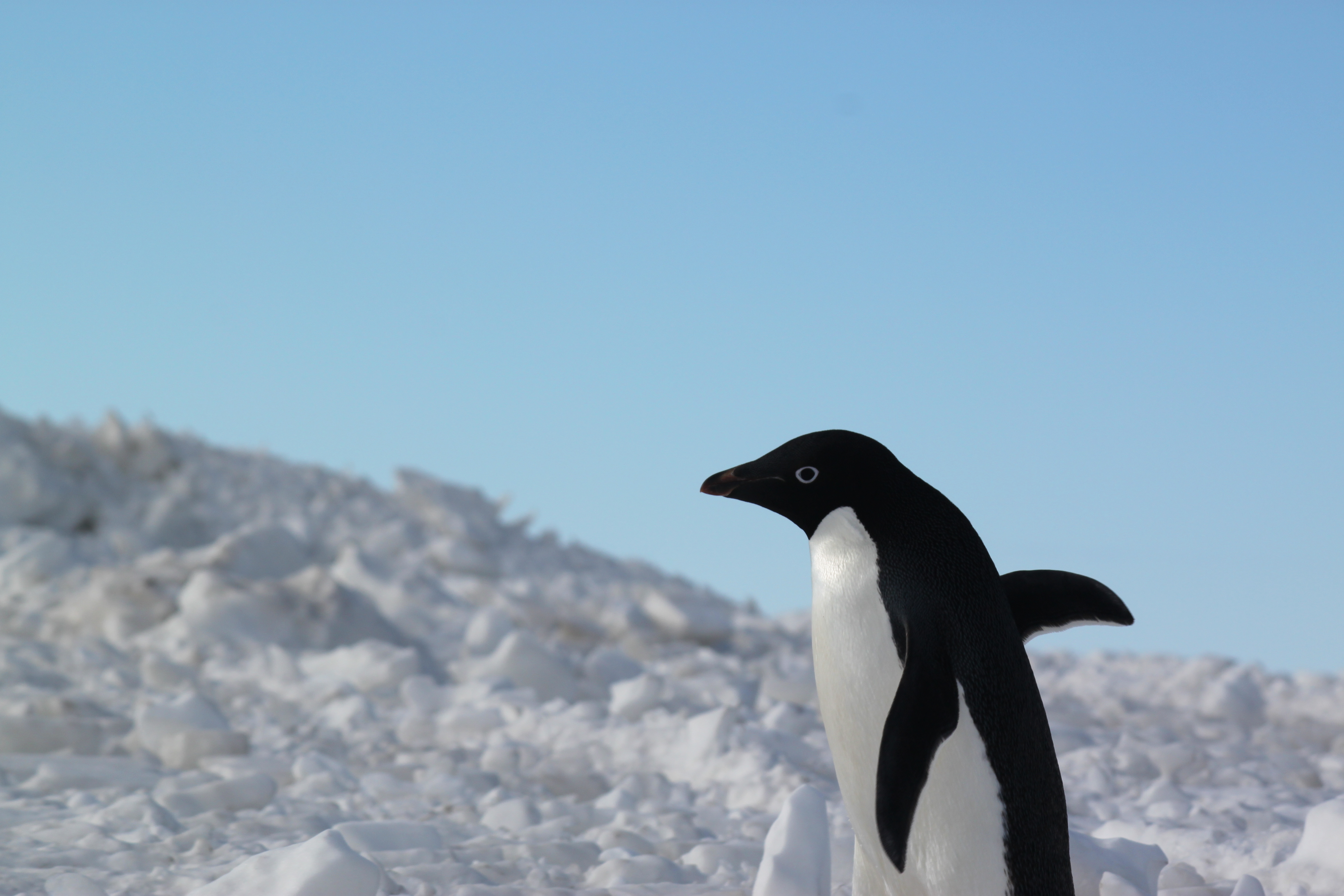 An Adélie penguin on the McMurdo Ice Runway at McMurdo Station, Antarctica.