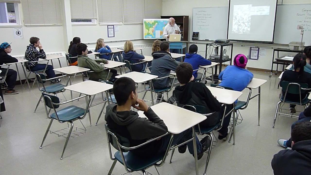 Dr. Robert McGhee speaks during his AVS visit with Cordova middle and high school students in Cordova, Alaska.