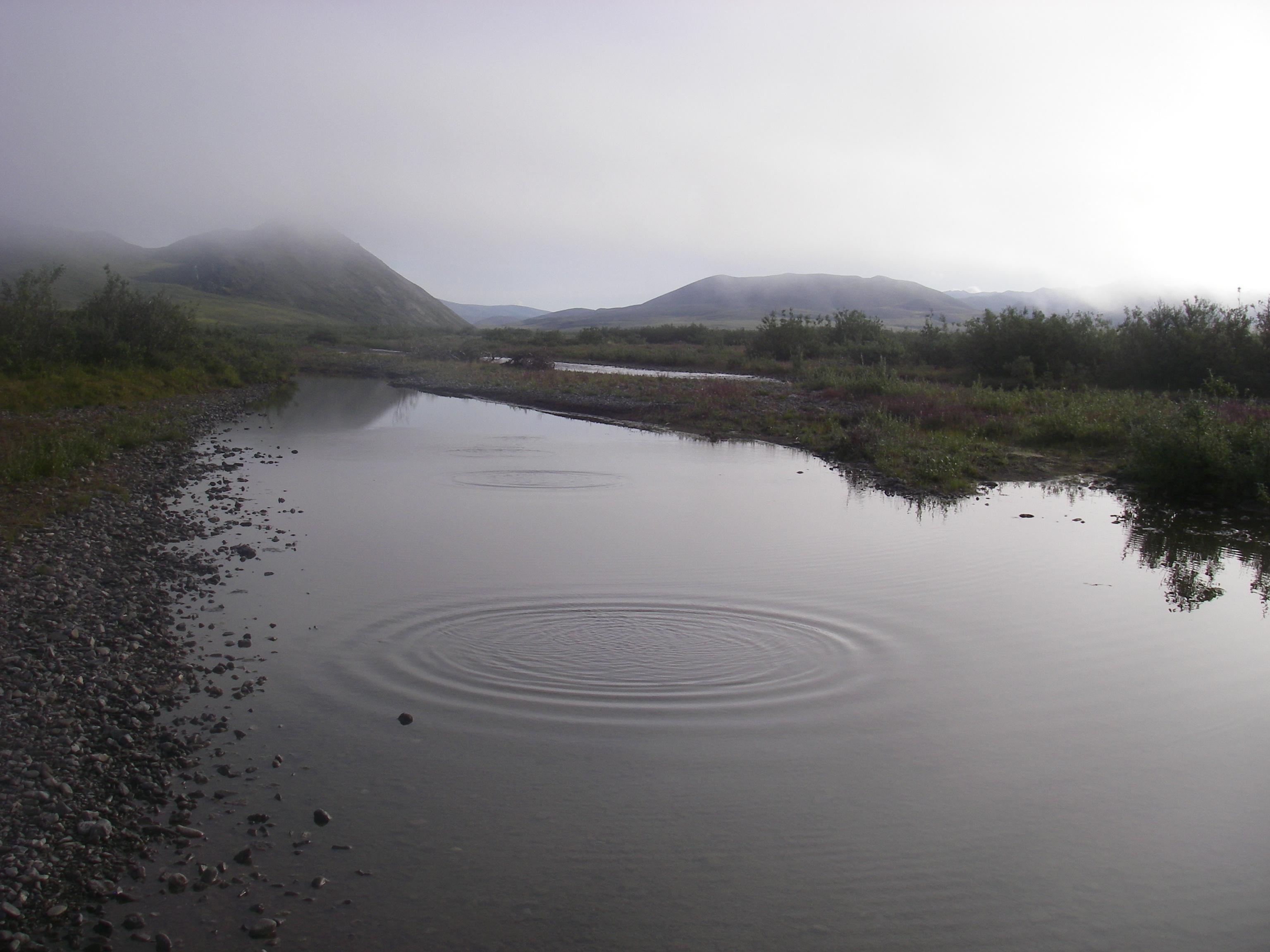 Karl Horeis skips a stone at Raven Bluff, Alaska.
