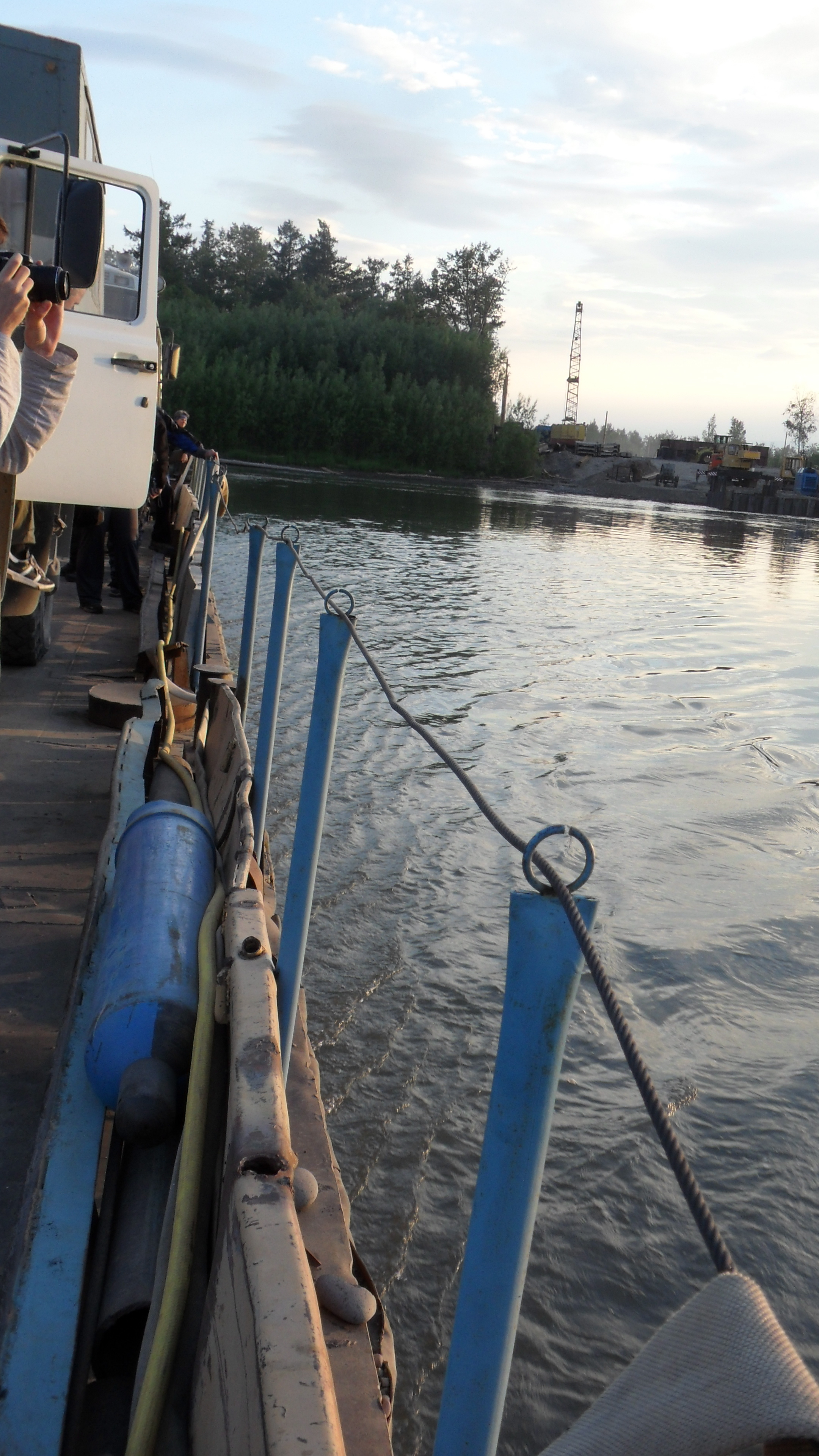 The ferry pulls away from the shore. On the way to Ushki Lake on the Kamchatka Peninsula, Russia.