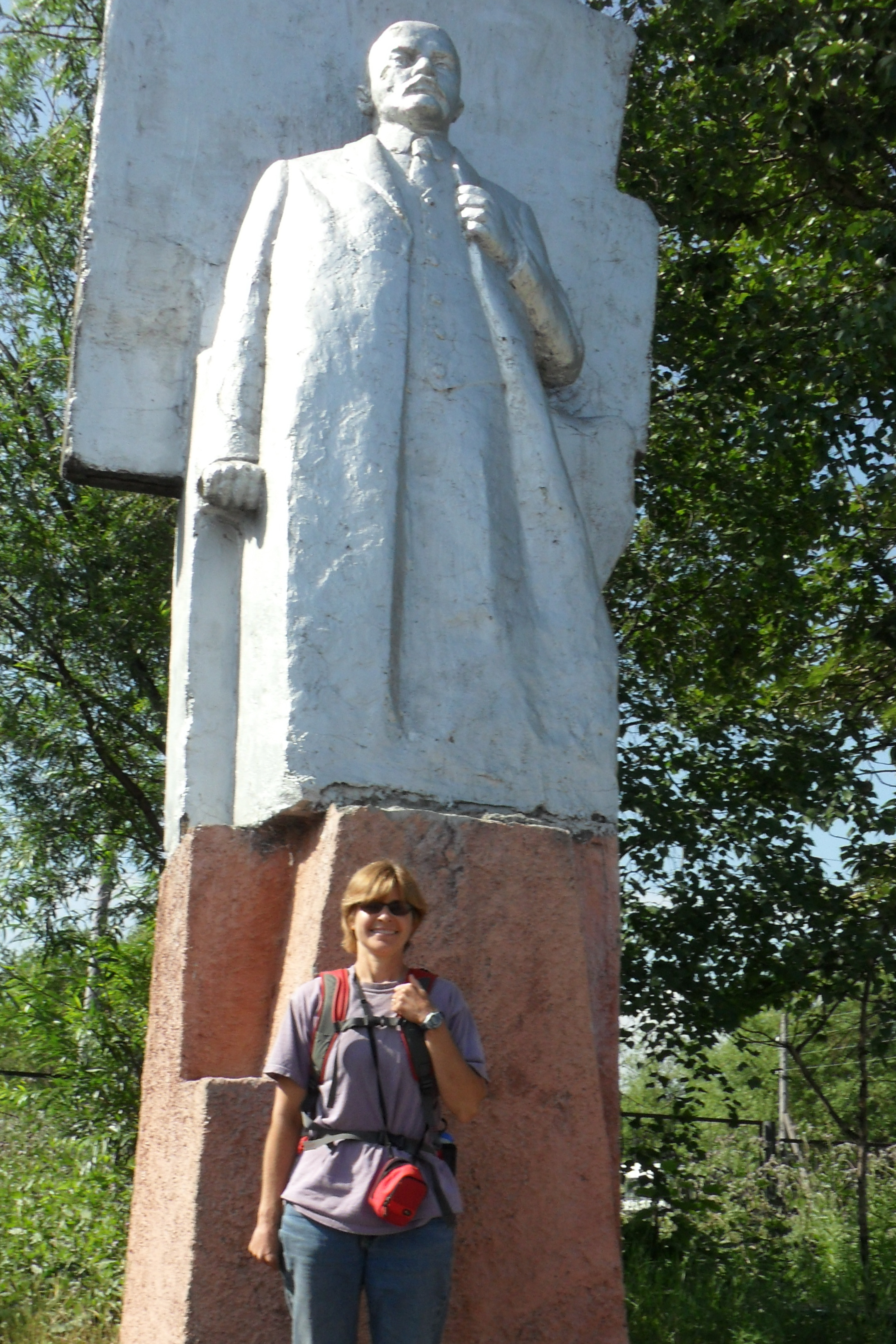 Claude poses with a statue of Lenin at the town center of Kluchi, Russia.