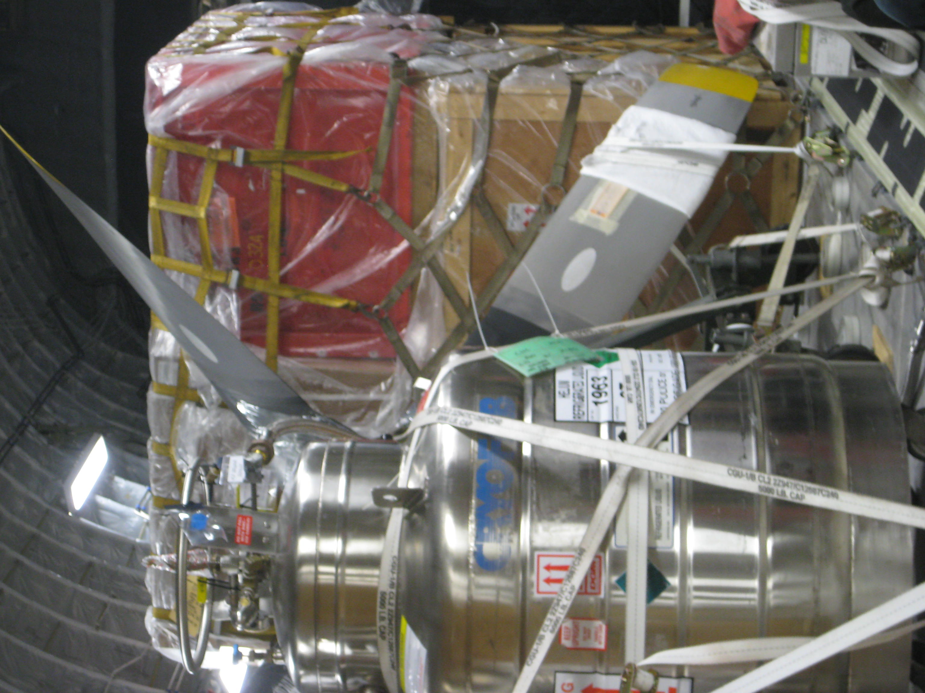 Pressurized helium makes up some of the cargo on the C-17. Christchurch, New Zealand.