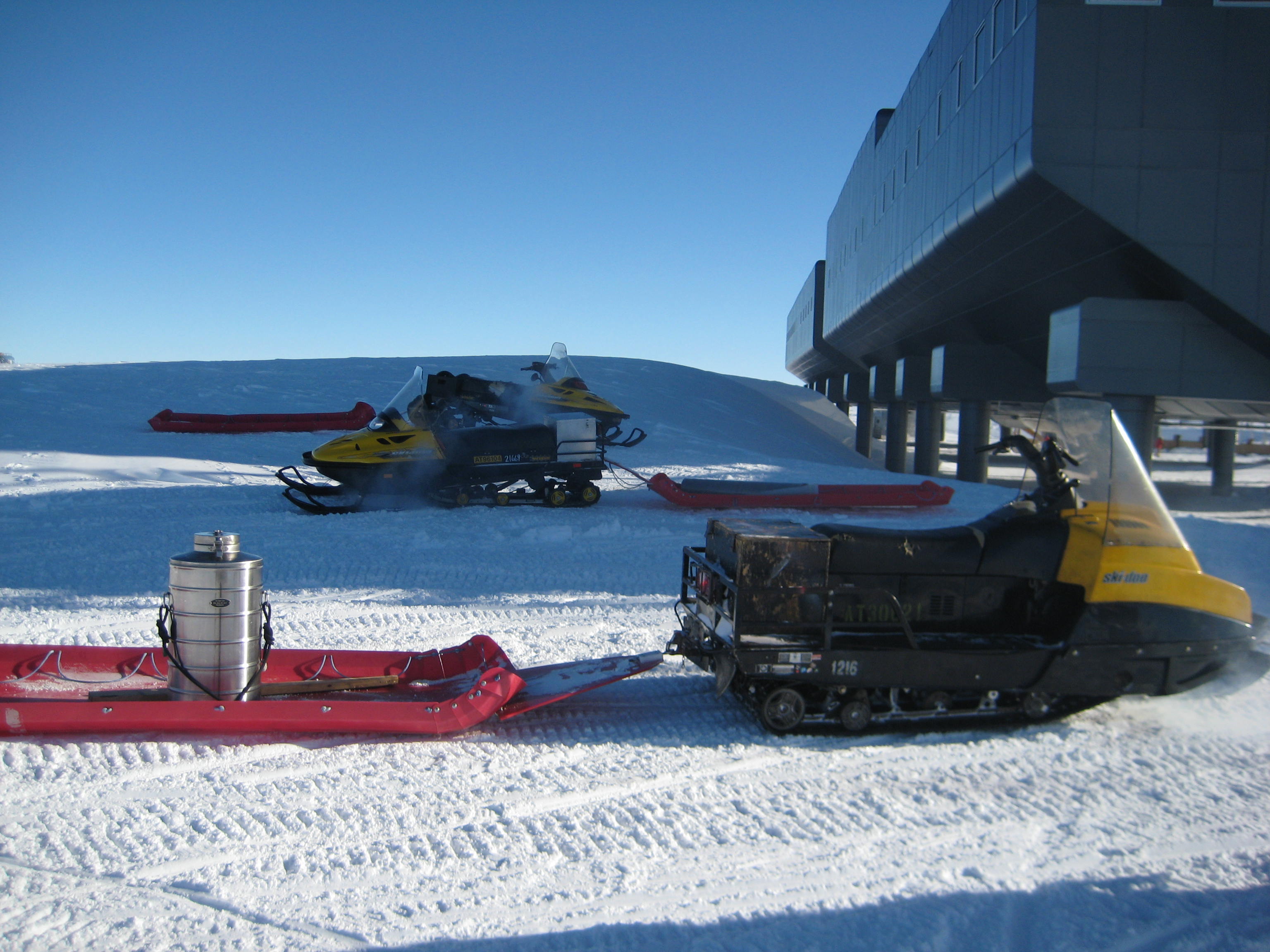 Snowmobiles at Amundsen–Scott South Pole Station, Antarctica.