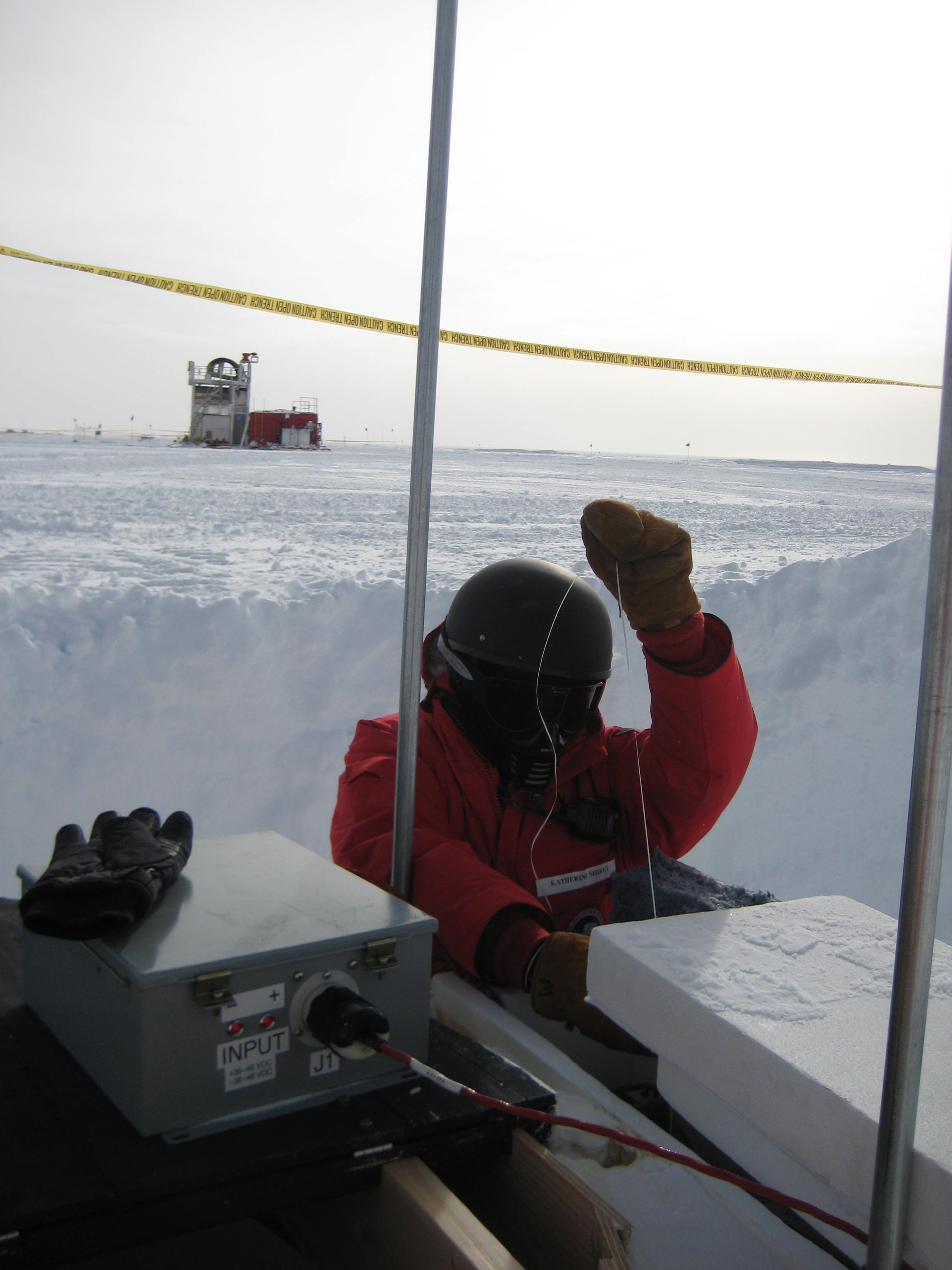 Katey Shirey: "I also helped fish out the last contactor cables through the FCUs [Freeze Control Unit]." Amundsen–Scott South Pole Station, Antarctica.