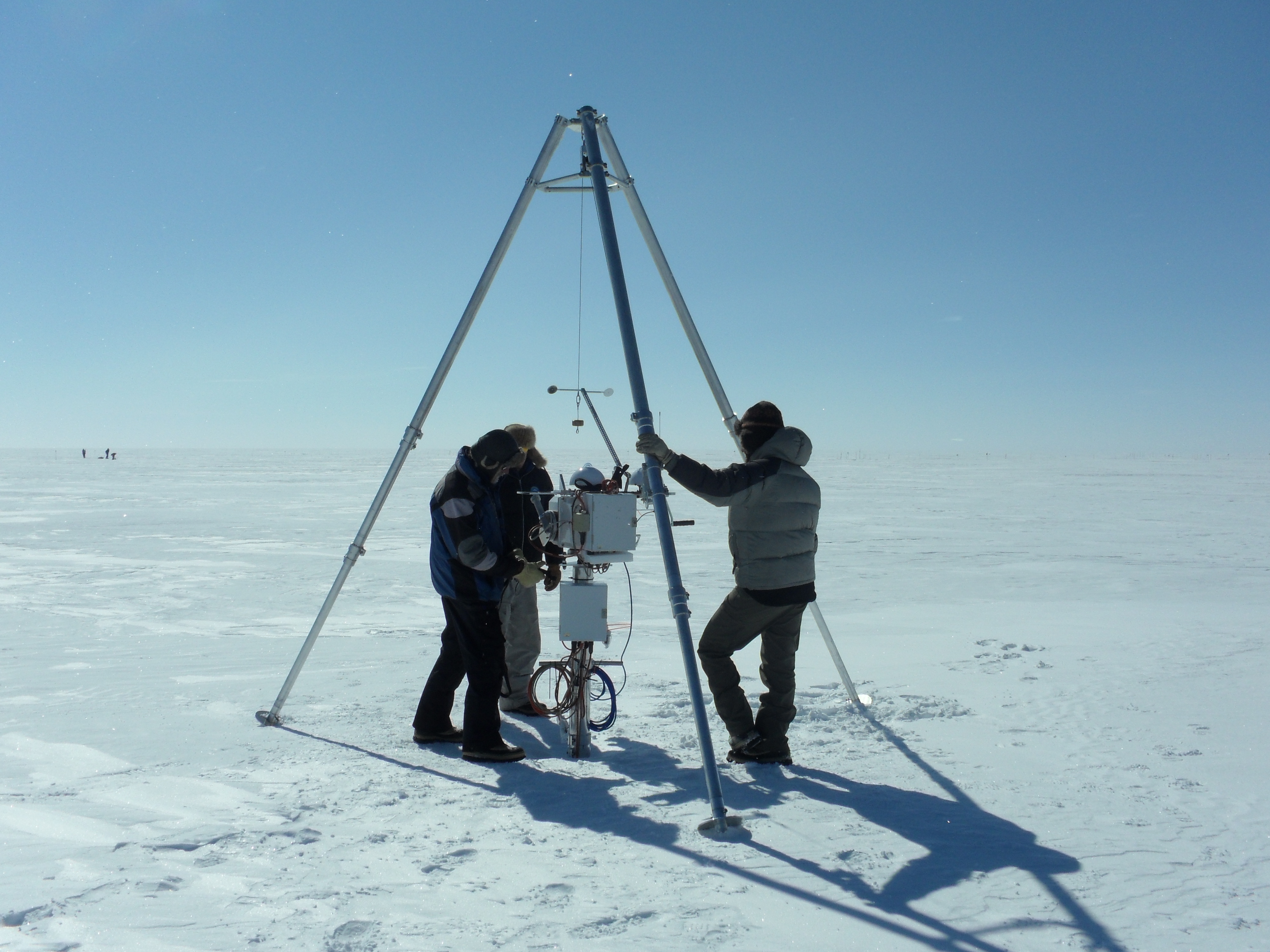 The team builds the BSRN (Baseline Surface Radiation Network) tripod in Summit Station, Greenland.