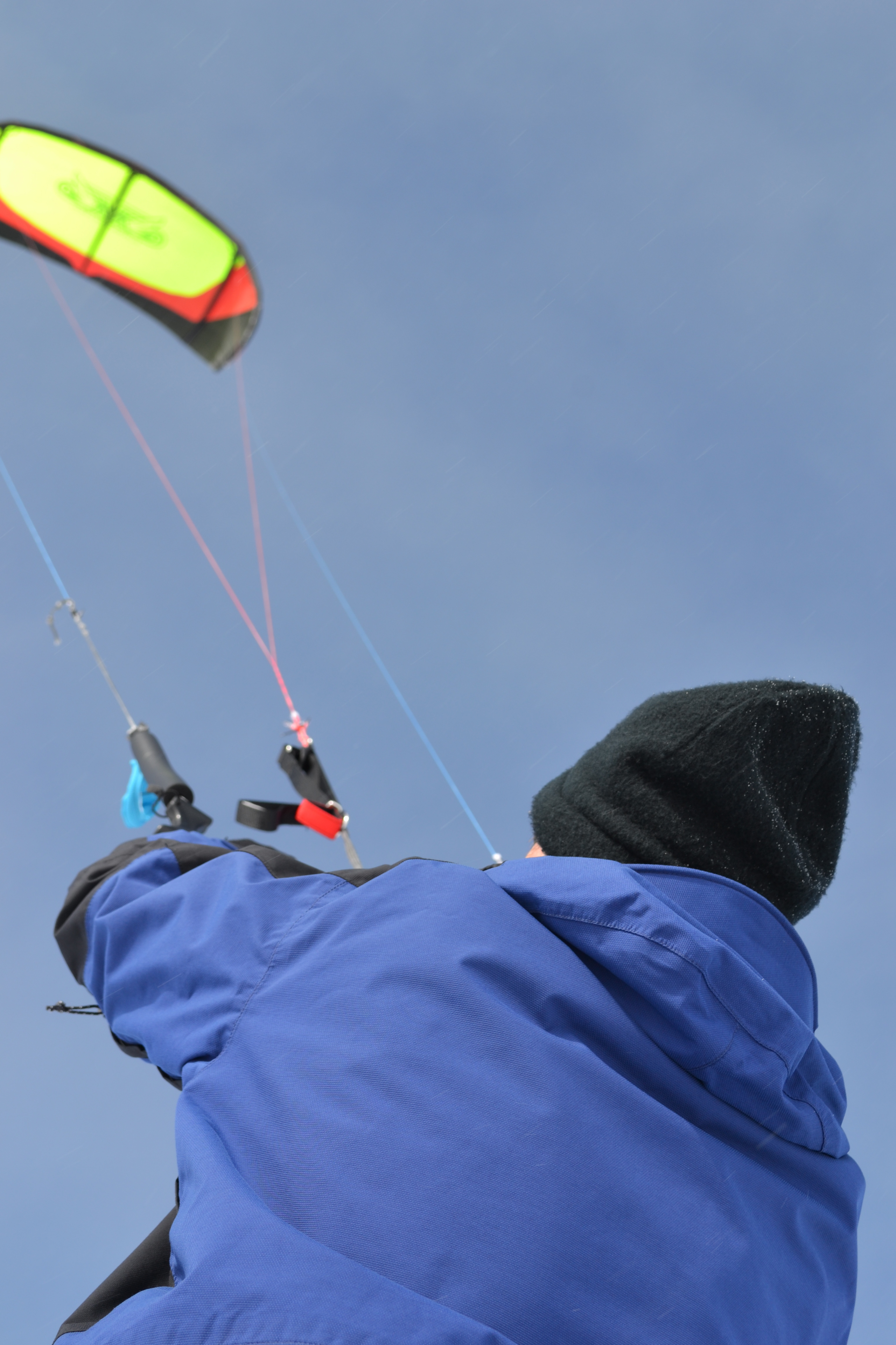 Kevin McMahon holds a kite and contemplates whether he will try to kite ski. Summit Station, Greenland.
