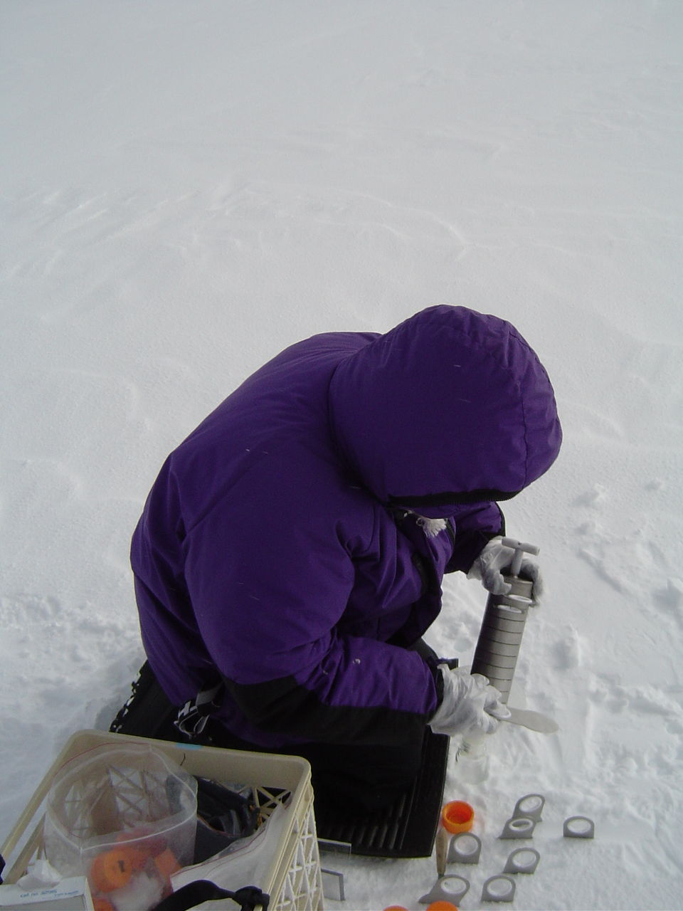 TREC teacher Nikki Airaudi collecting snow samples at Summit, Greenland.