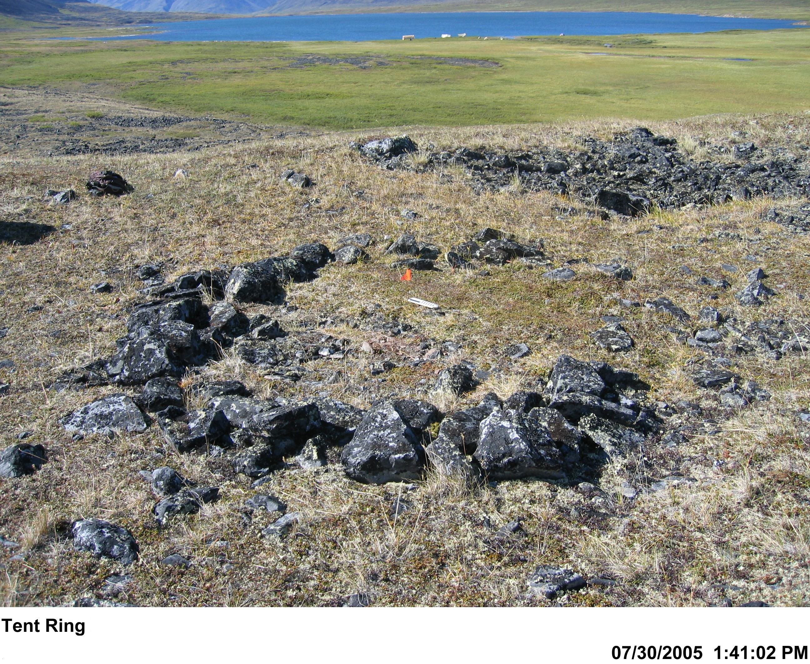 Prehistoric tent ring feature dated to approximately 4500 BP, near Agiak Lake, Gates of the Arctic National Park, central Brooks Range, Alaska.