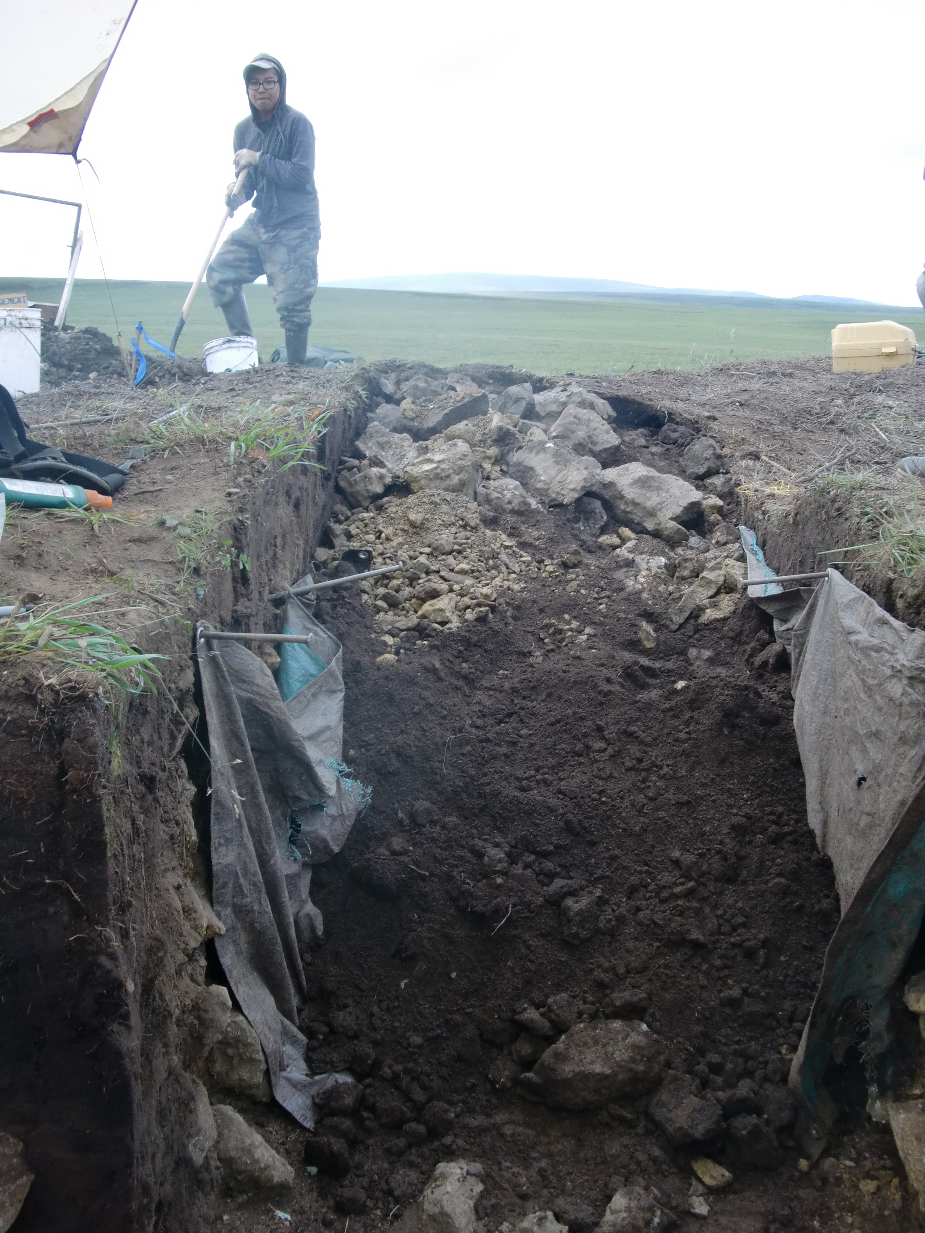The site is filled in one bucket at a time. At Raven Bluff, near Kivalina, Alaska.