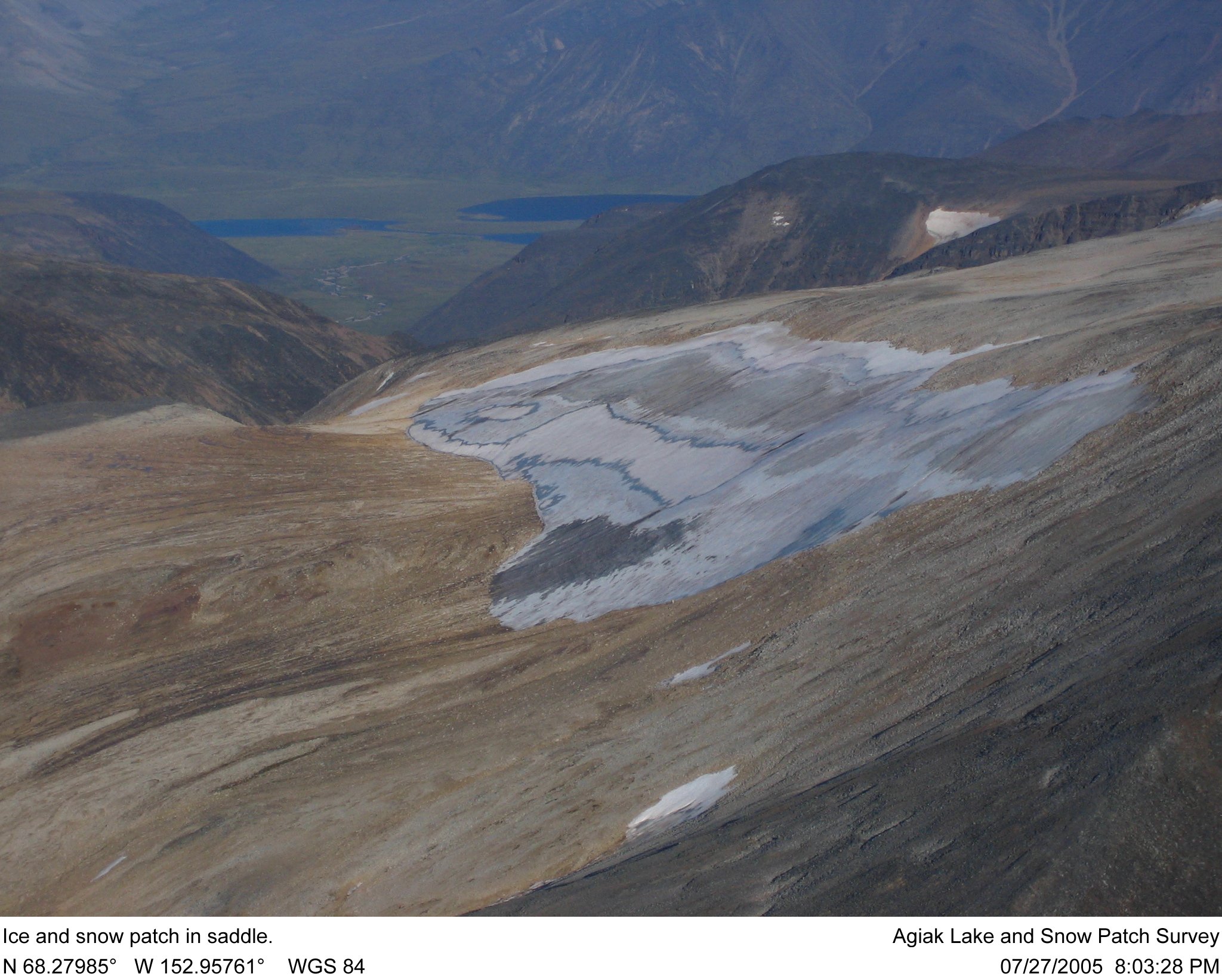 A snow patch in Gates of the Arctic National Park, central Brooks Range, Alaska. Photo taken in July 2005