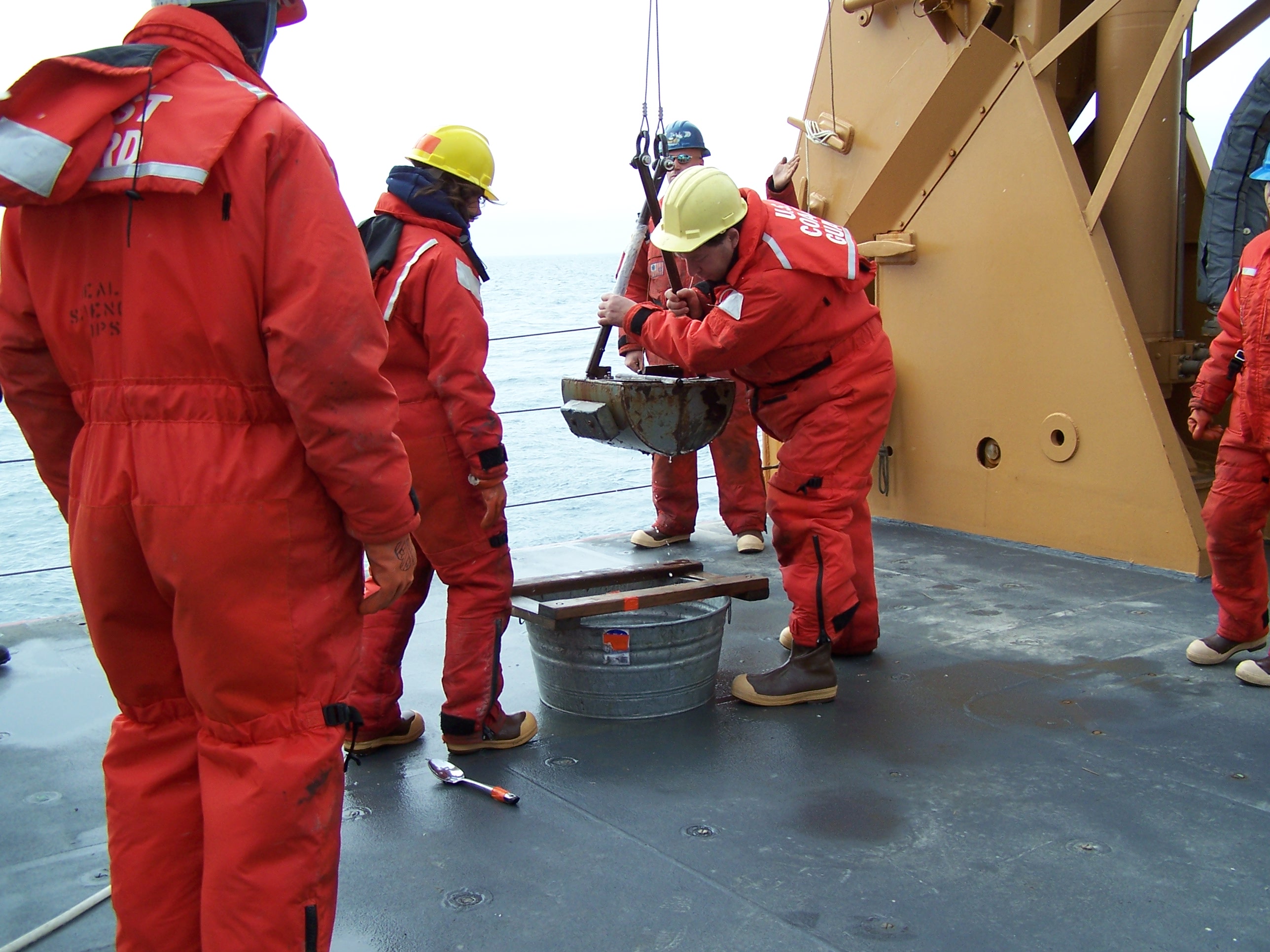 Lee Cooper emptying the vanVeen grab on the Healy icebreaker.