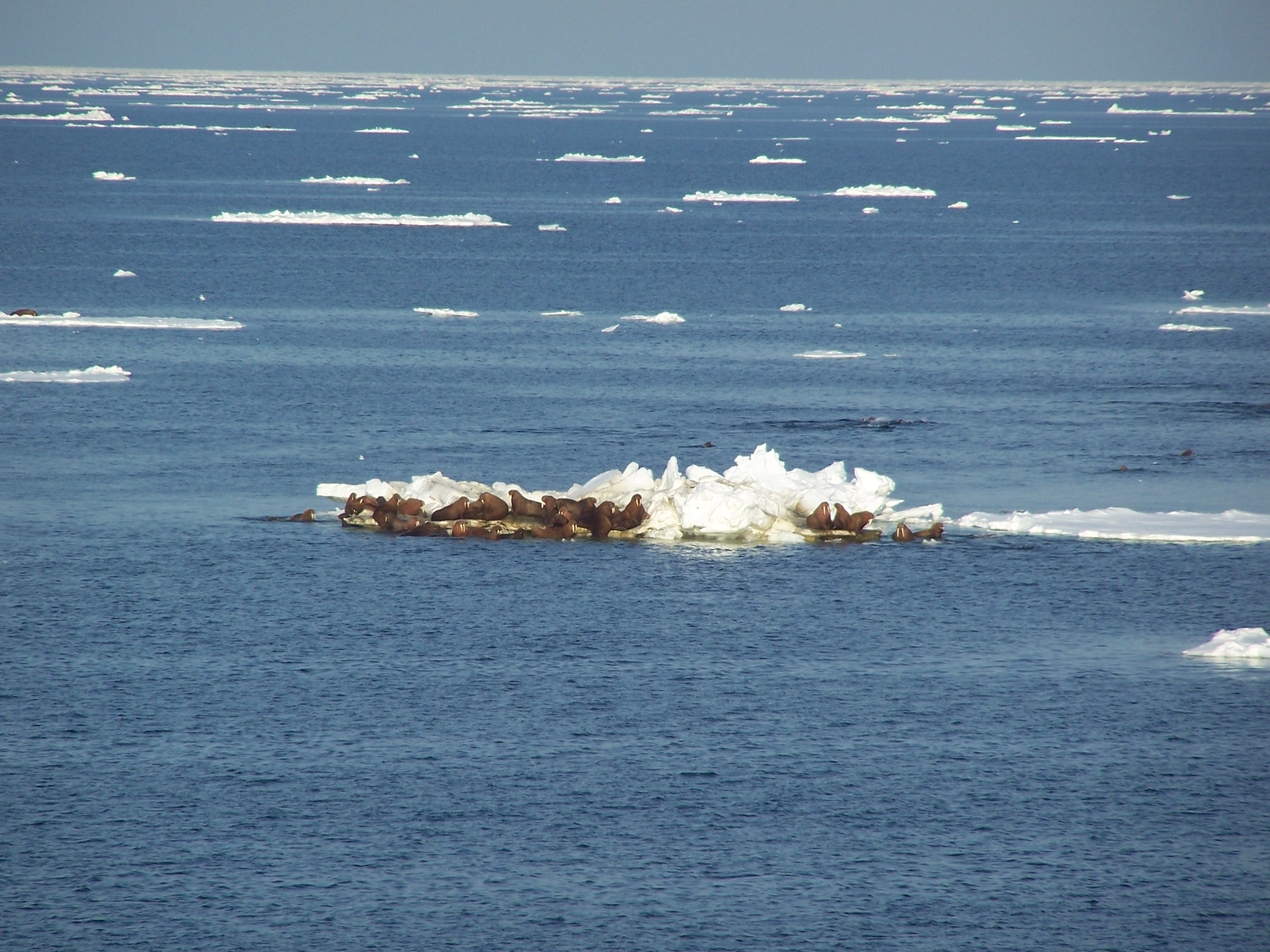 Walrus as seen from the USCG Healy icebreaker on the Bering Sea.