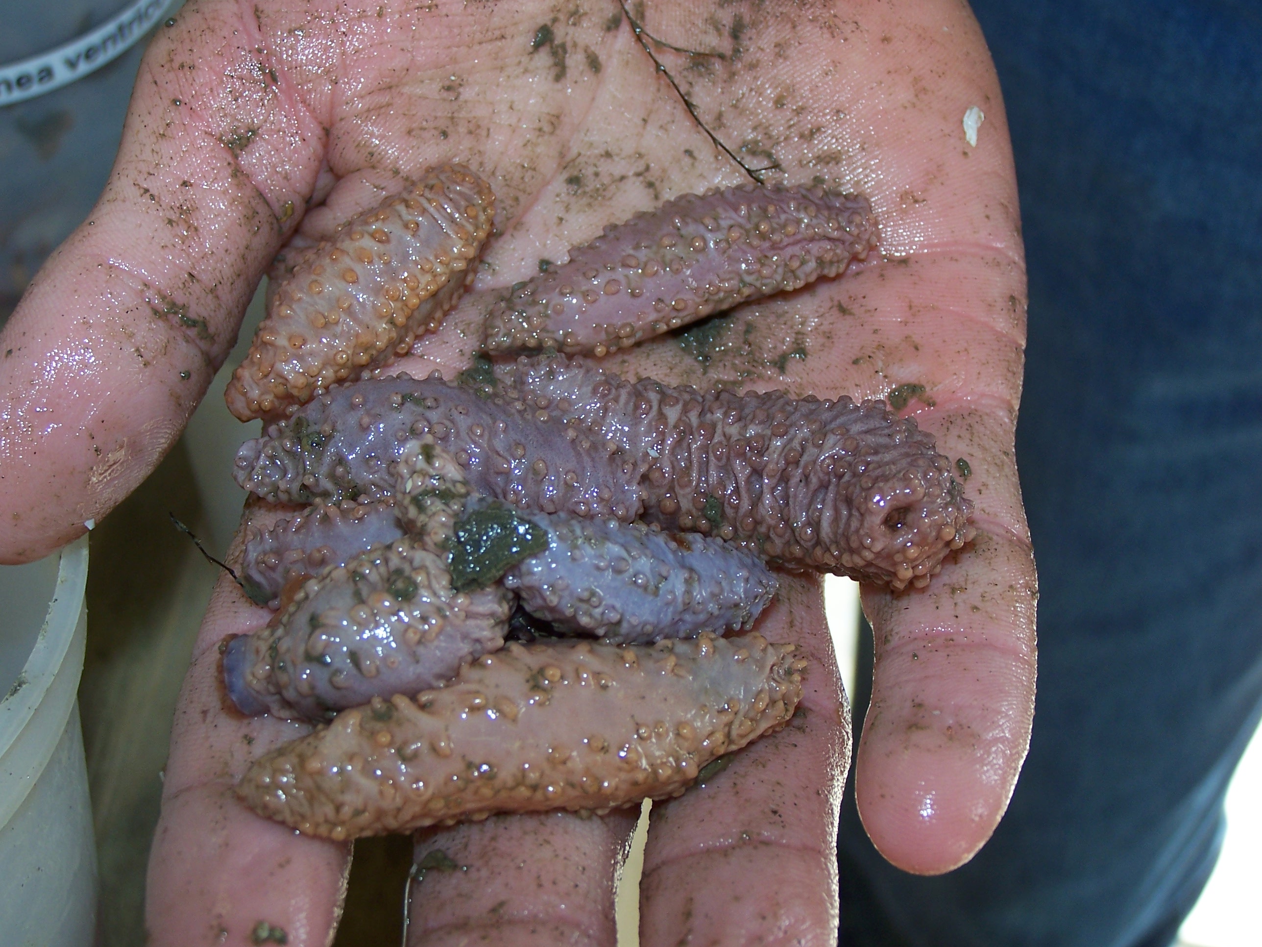 Sea cucumbers pulled up in trawl catch on the USCG Healy icebreaker in the Bering Sea.