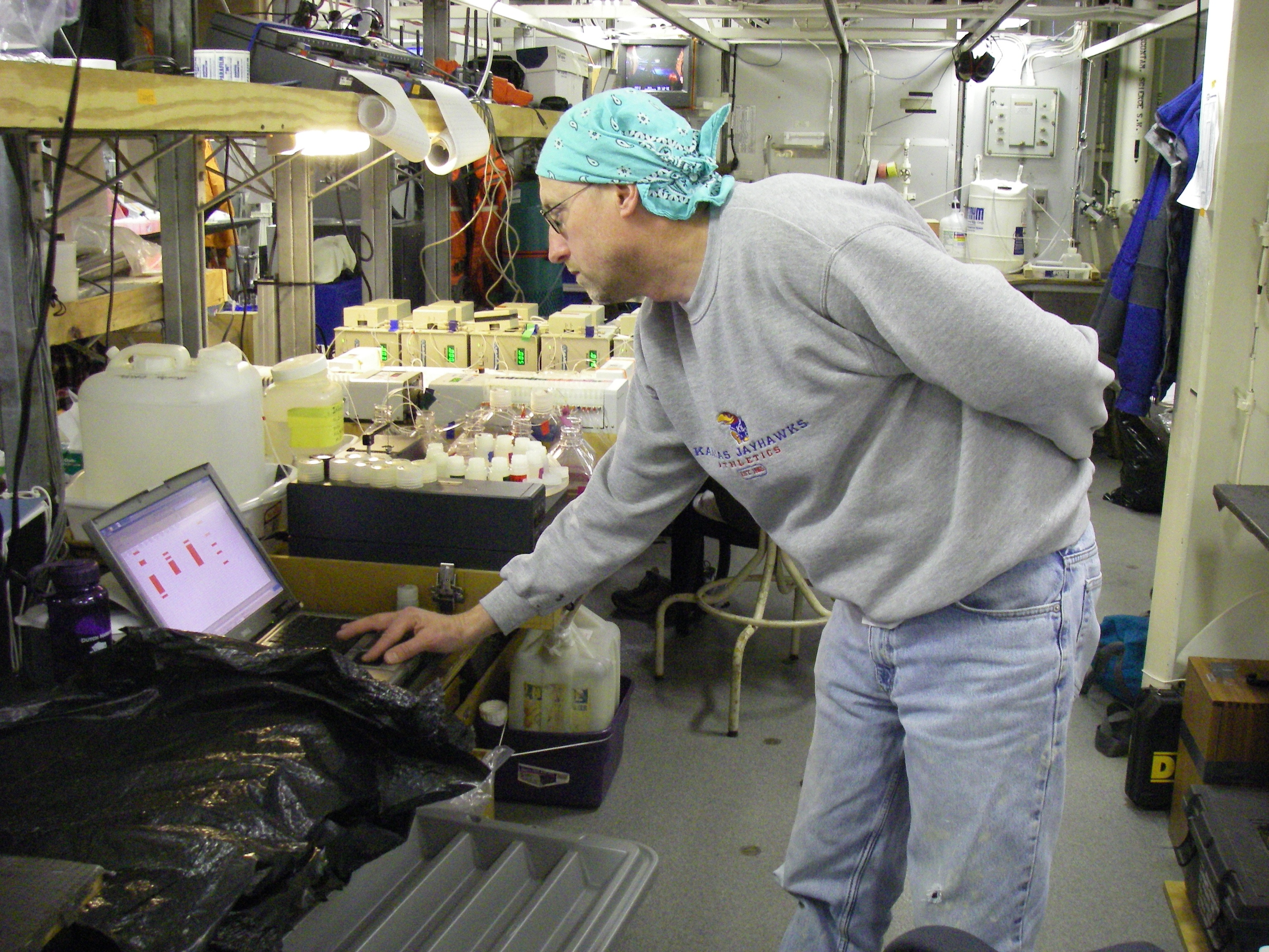 Cal working on data. On the USCGC Healy icebreaker, on the Bering Sea.