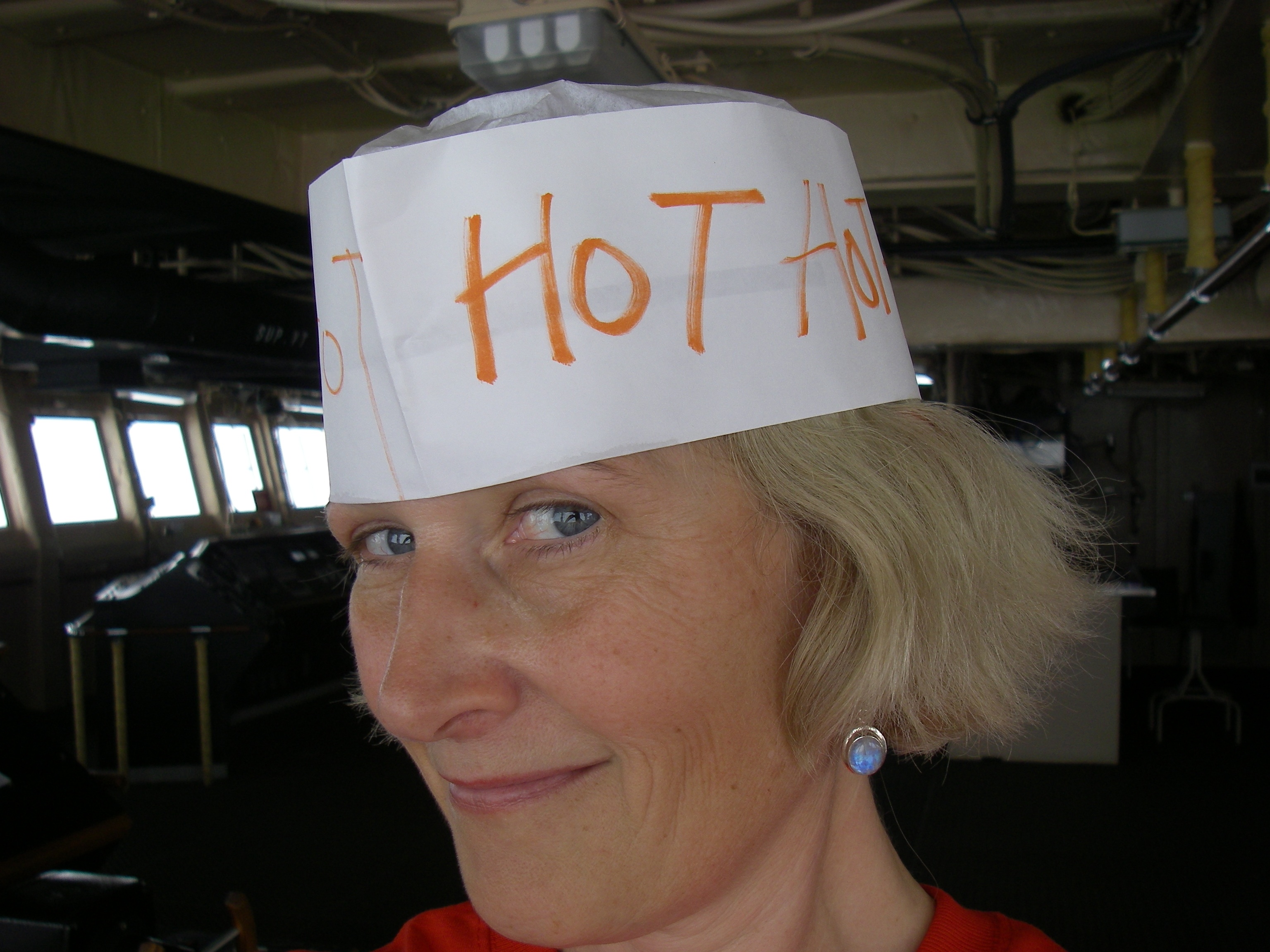 Maggie Prevenas getting ready to cook for a celebration on the USCGC Healy icebreaker, on the Bering Sea.