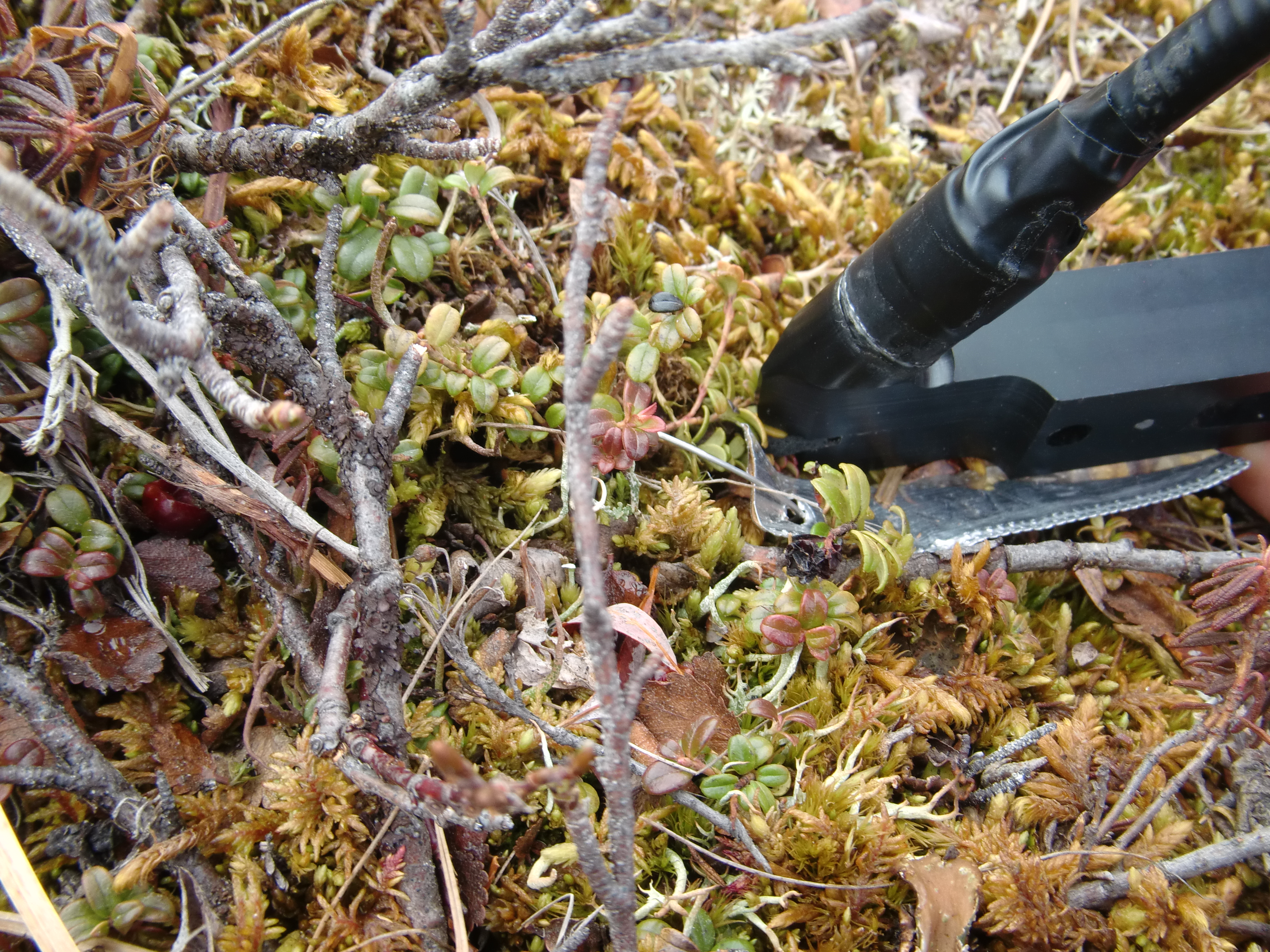 Greg Starr carefully puts the clamp on one of his study plants. At the old air strip near Toolik Field Station, Alaska.
