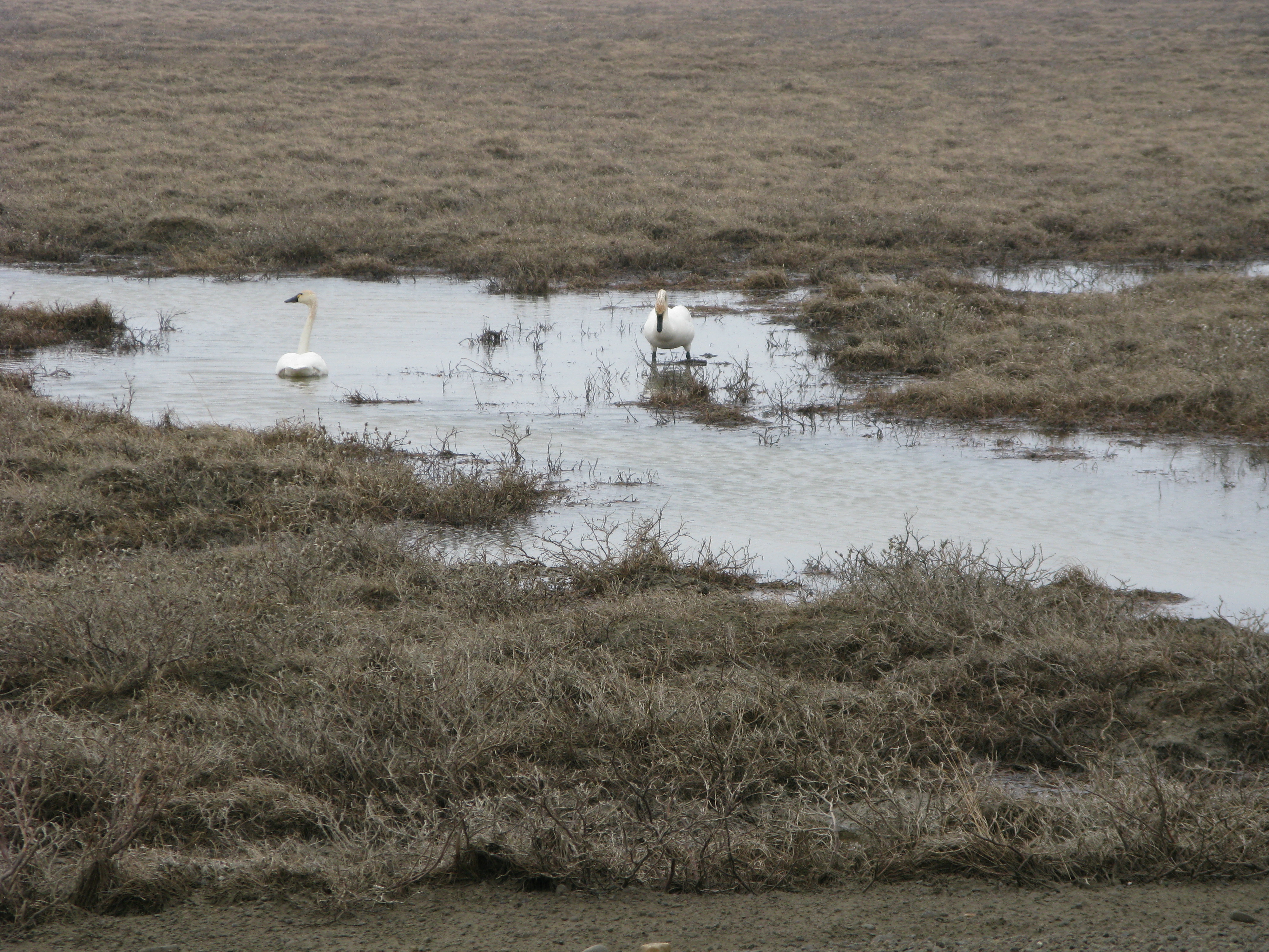 Tundra swans on the way to Deadhorse. About 30 miles south of Deadhorse, Alaska.