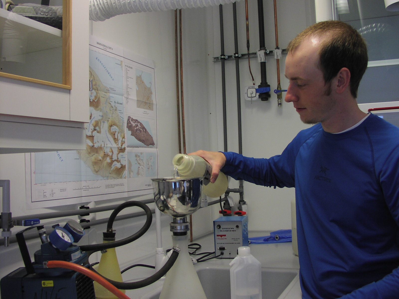 Luke Trusel in the Arctic Marine Laboratory, Svalbard, Norway.