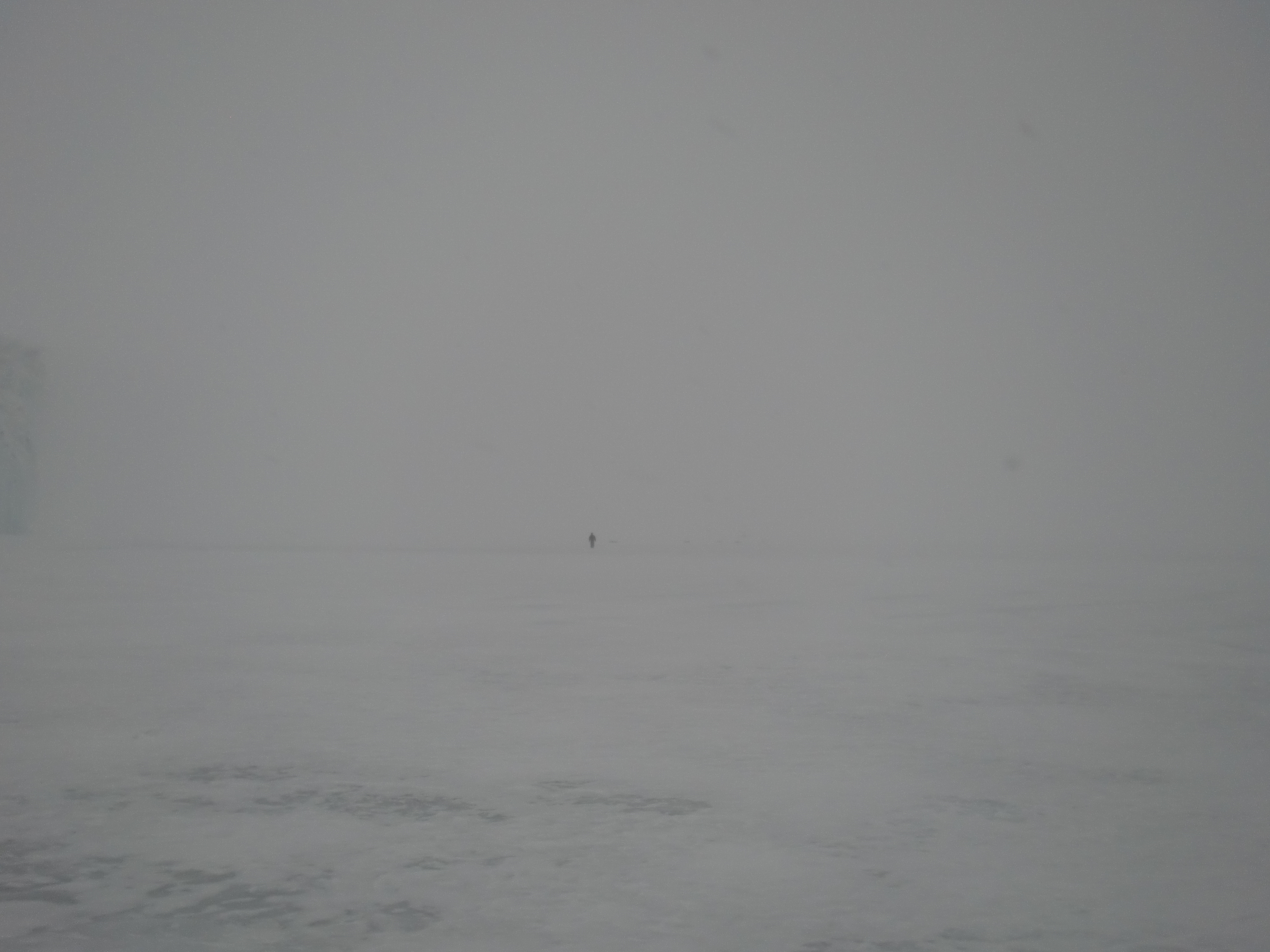 A helicopter tech walks through the white out. Nordenskjold Ice Tongue, Antarctica.