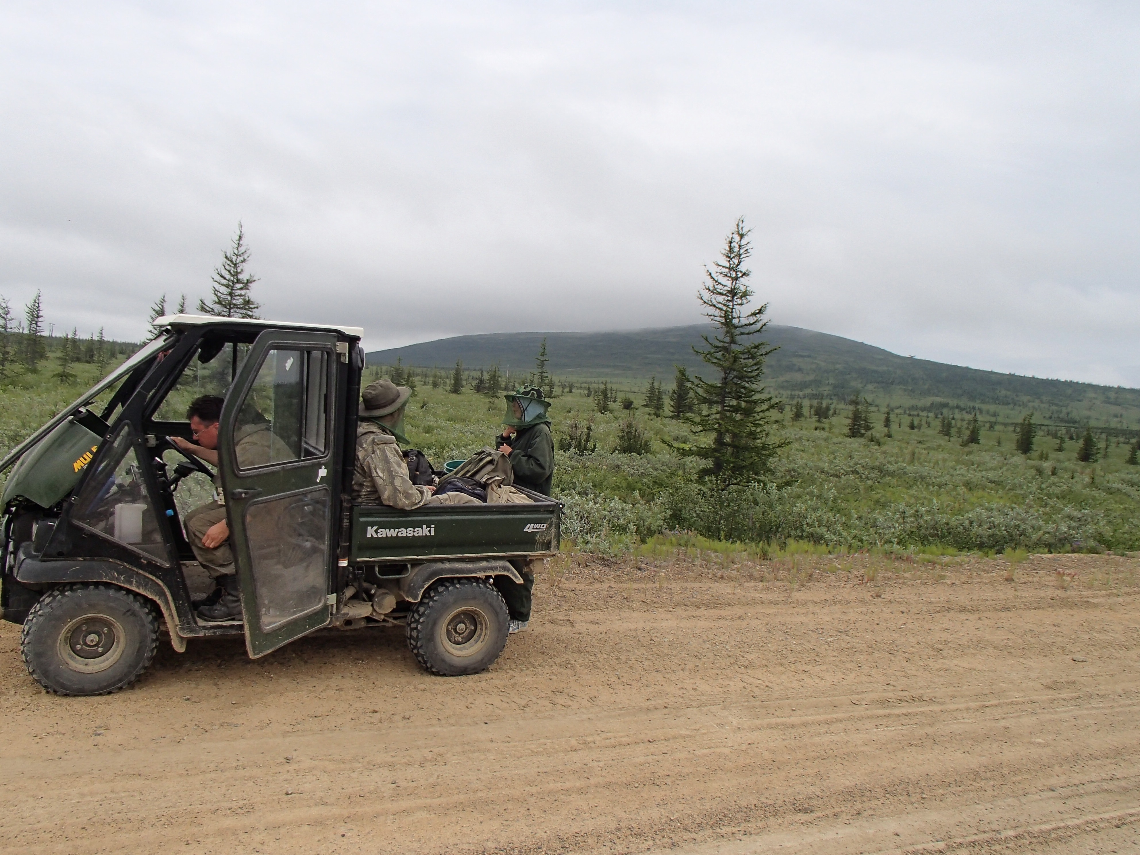 The drilling team, Dr. Sasha Kholodov, Dr. Valentin Spektor, and Varvara Andreeva are with Mark Paricio. Note that the ATV is broken down. Cherskiy, Russia.