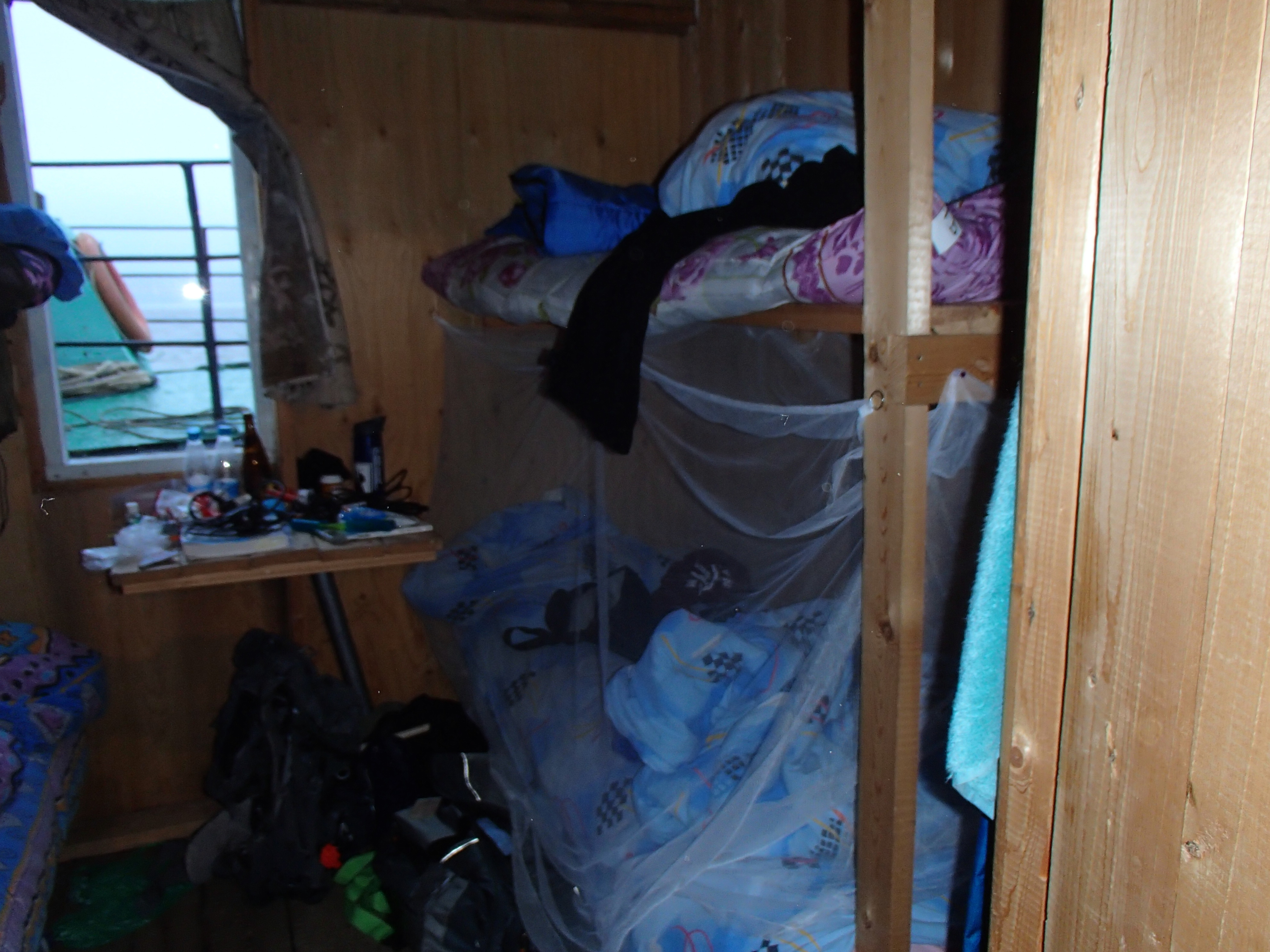 Mark Paricio: "Sleeping quarters on the barge. Each of the four bunks were about 6 feet long and 24 inches wide. The top bunk was not for restless sleepers!" Duvanny Yar, Russia.