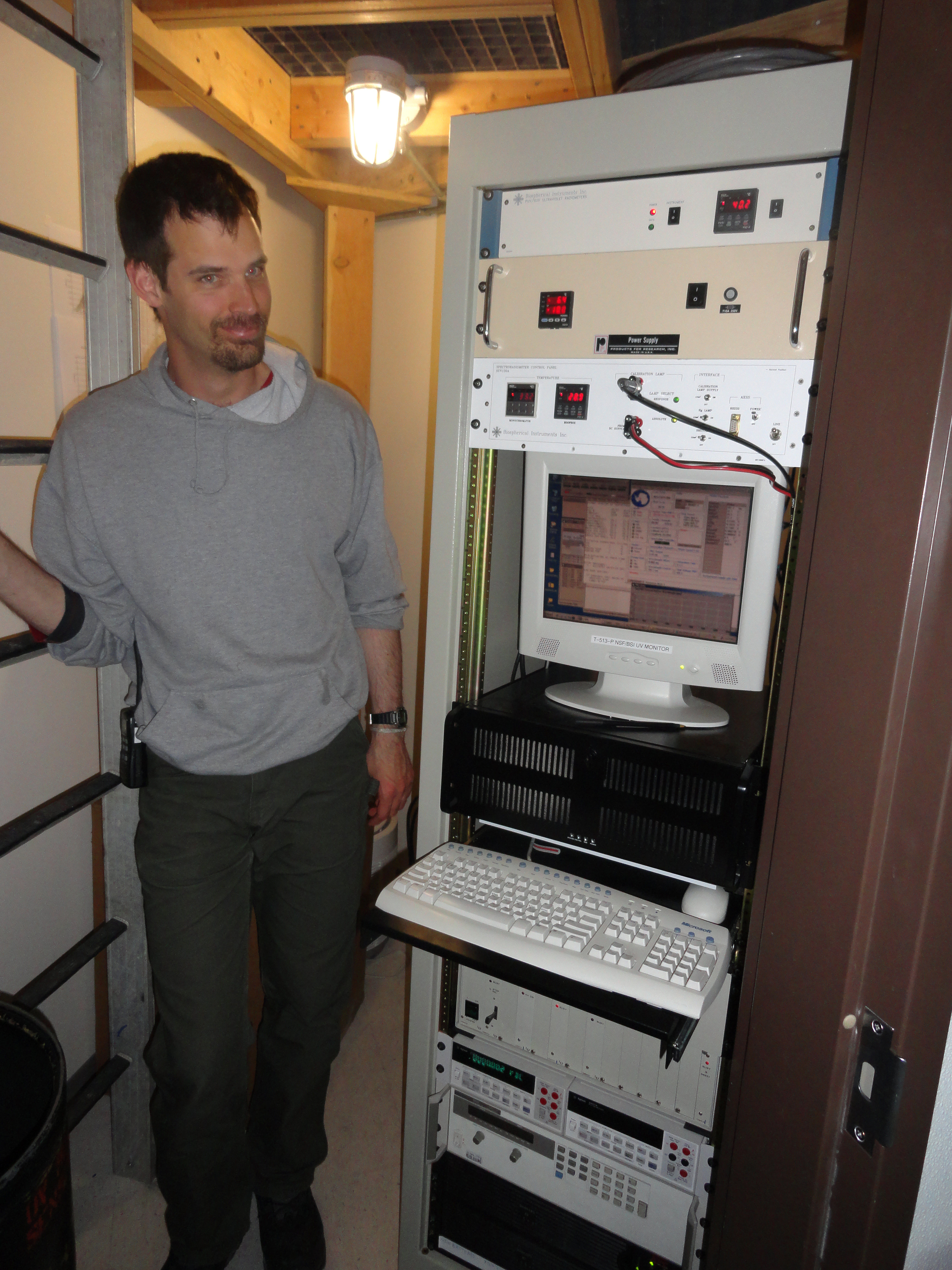 Neal Scheibe with the UV monitor at Terra Lab. Palmer Station, Antarctica.