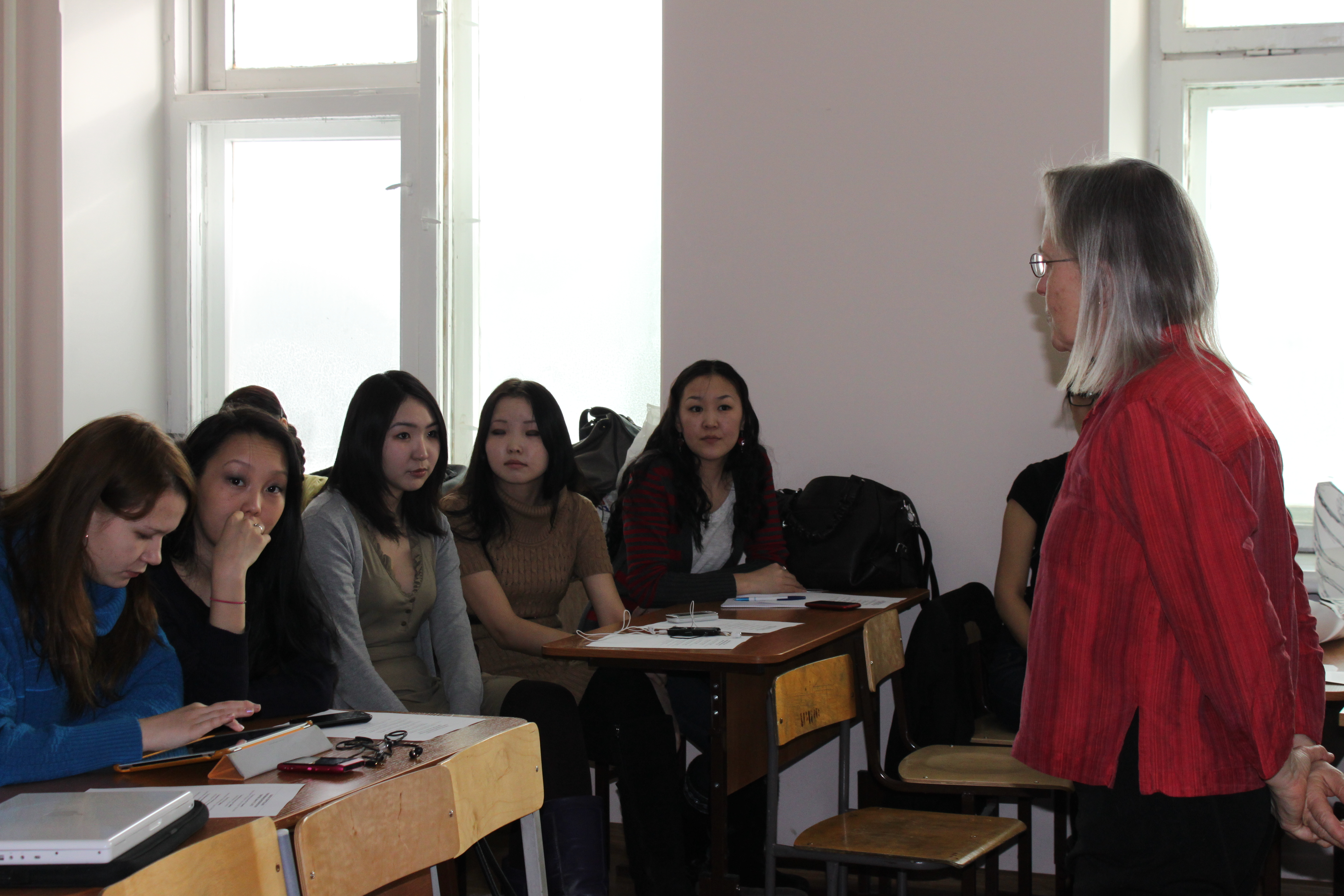 Kathleen Osgood gives her lecture on northern storytelling. North-Eastern Federal University in Yakutsk, Russia.