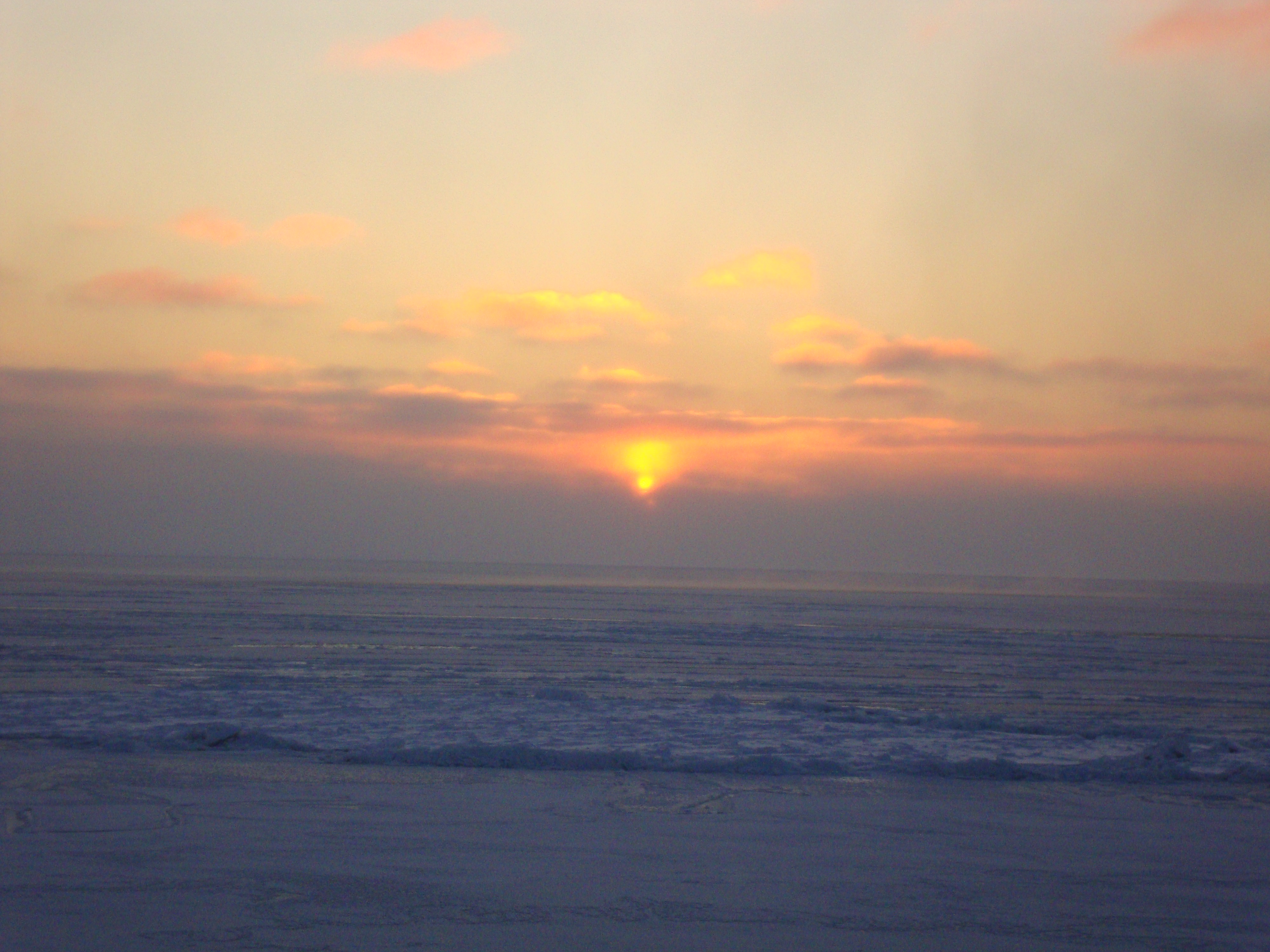 The sun returns for the first time in a while. Aboard the USCGC Healy icebreaker on the weather deck.