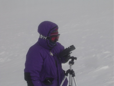 TREC teacher Nikki Airaudi reads a photometer at Summit, Greenland.
